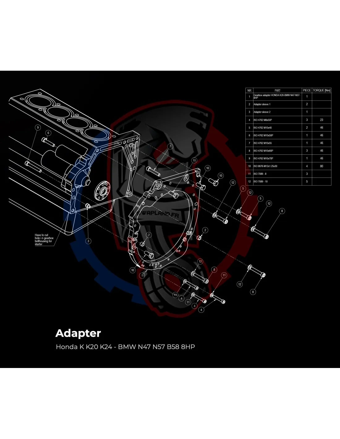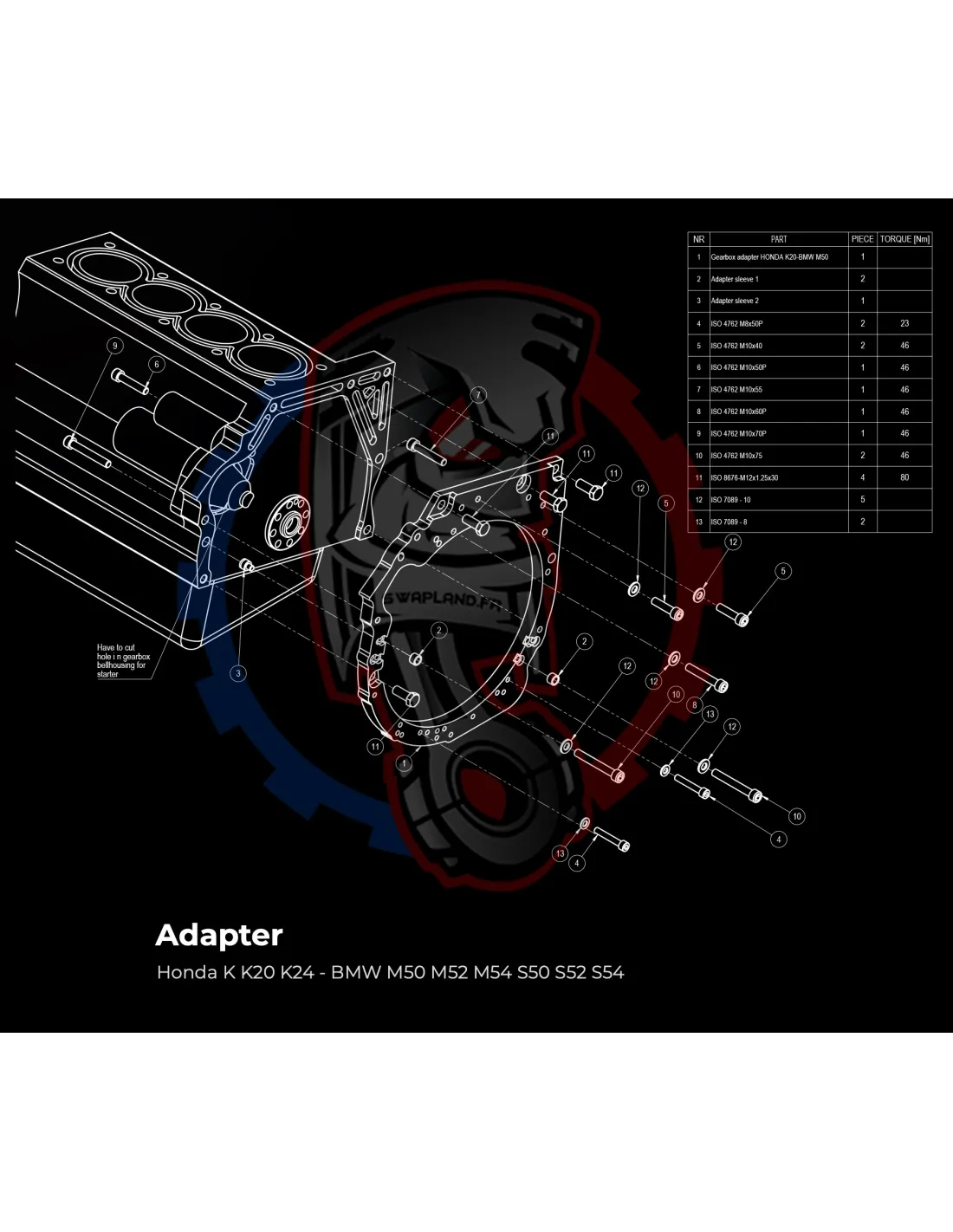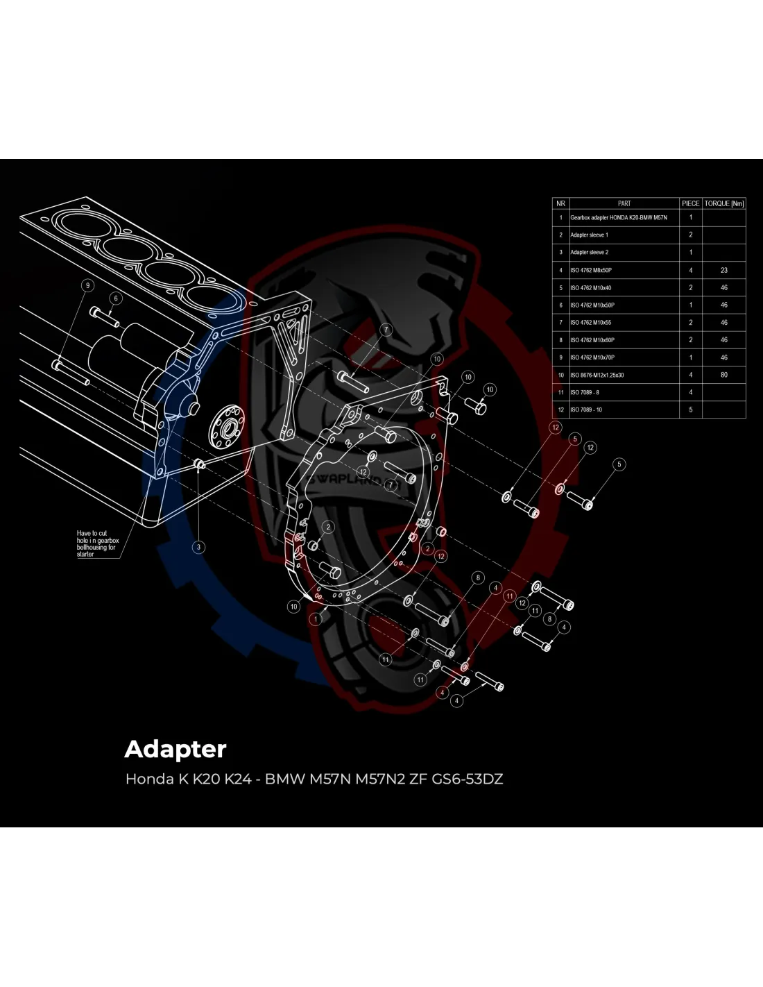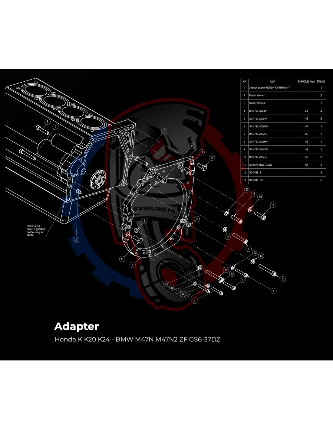 Plaque de conversion de boîte de vitesses BMW ZF310 / ZF320 / ZF GS5-39DZ / Getrag420G / ZF GS6-37DZ / ZF GS6-53DZ HGK HGU JGA HGD HGA JGL / GS6-53BZ / Getrag DCT DKG GS7D36SG à six cylindres en ligne / ZF 8HP 8HP70 8HP50 pour moteur Honda K K20 K24 :