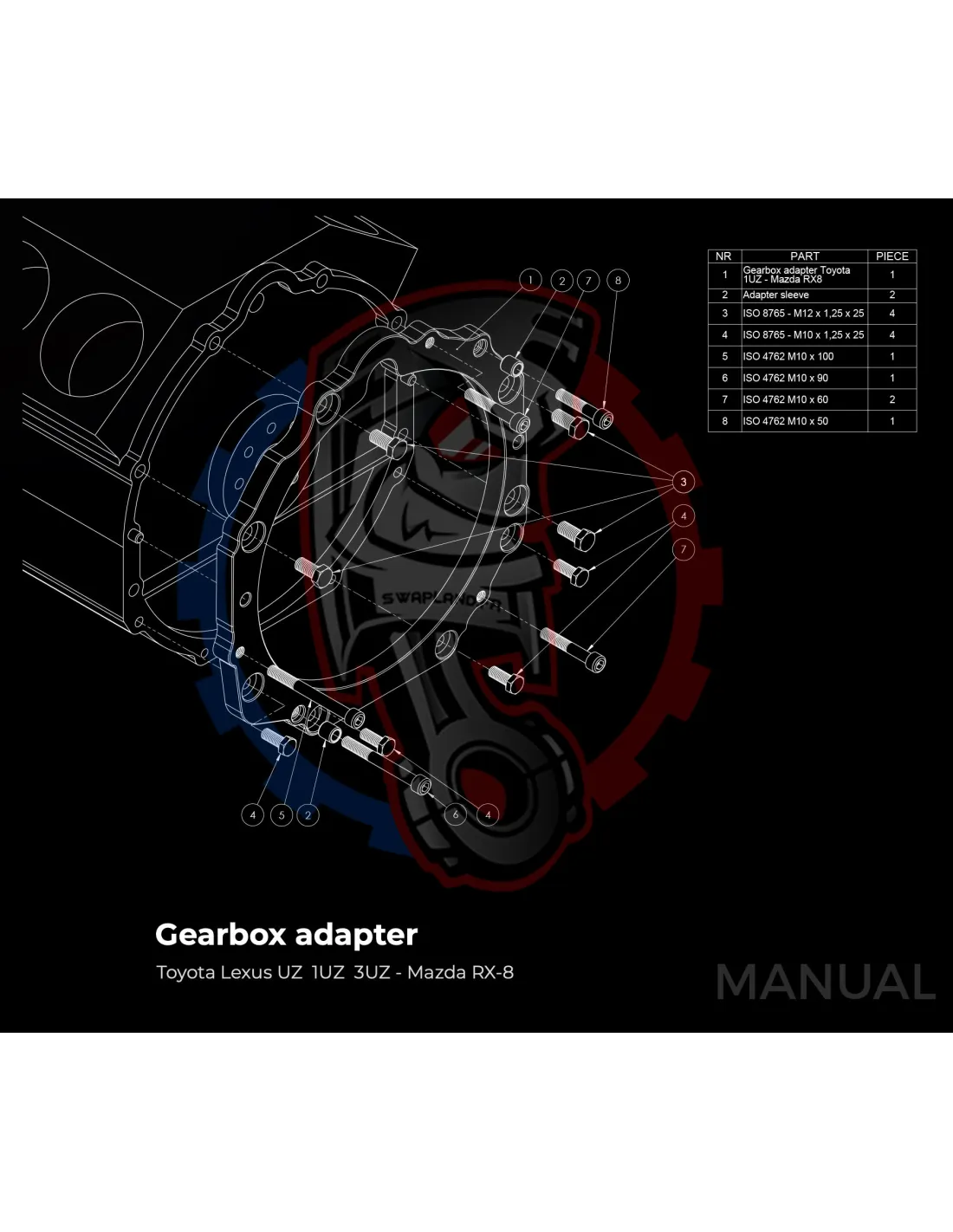 Plaque de conversion de boîte de vitesses Mazda RX-7 FD pour moteur Toyota Lexus V8 UZ 1UZ 3UZ :