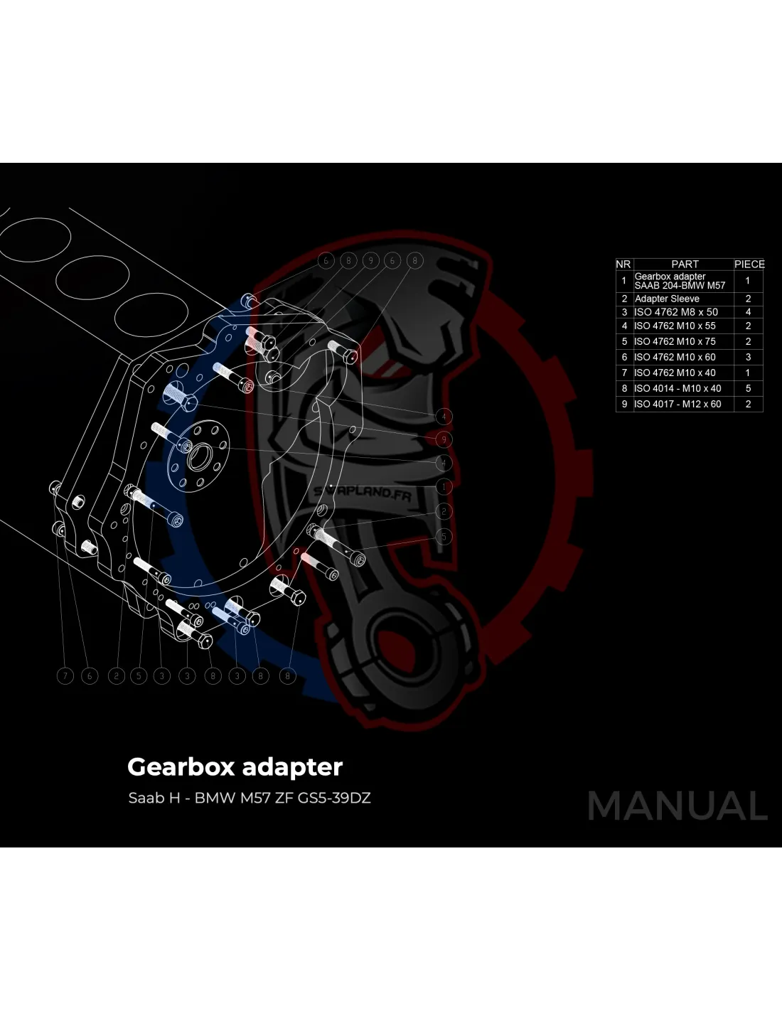 Plaque de conversion de boîte de vitesses BMW ZF310 / ZF320 / ZF GS5-39DZ / Getrag420G / ZF GS6-37DZ / ZF GS6-53DZ HGA pour moteur Saab H B204 B205 B234 B235 :