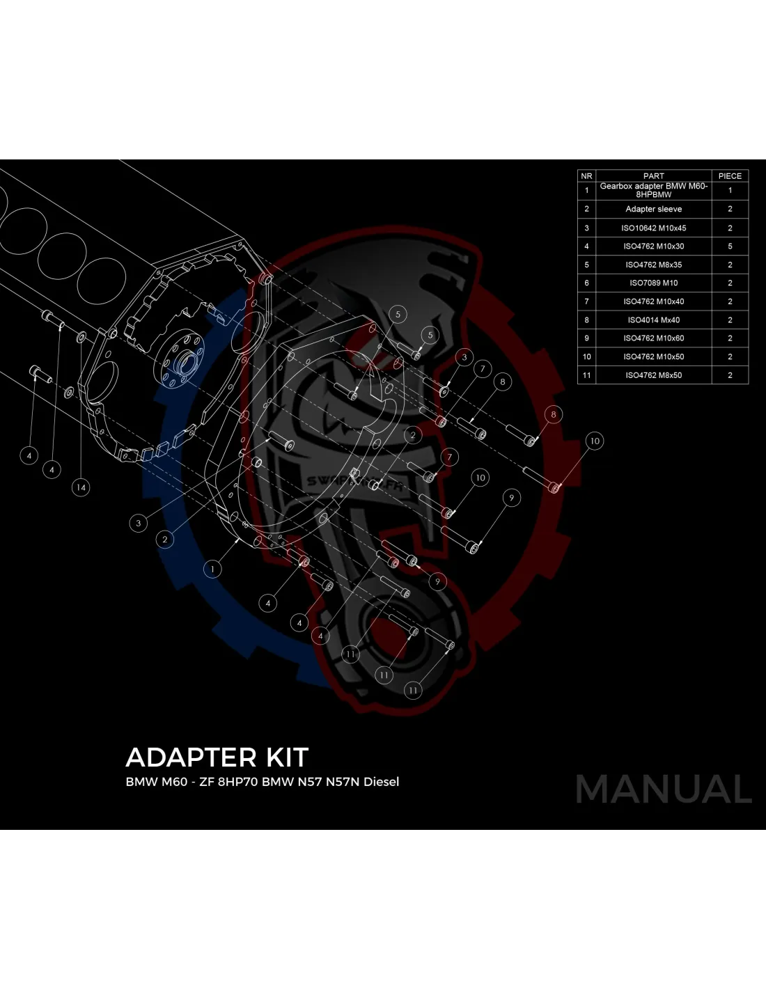 Plaque d'adaptation pour boite de vitesses BMW M57N2 ZF GS6-53DZ / ZF 8HP 8HP70 8HP75 8HP50 sur moteur BMW V8 M60 M62 S62.