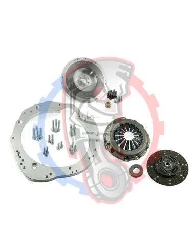 | Kit comprend | Adaptateur de boite de vitesse en Aluminium Vis pour boite de vitesse Volant moteur Kit vis vilebrequin Kit vis couvercle d’embrayage Plateau de pression Disque fritté 250 mm |