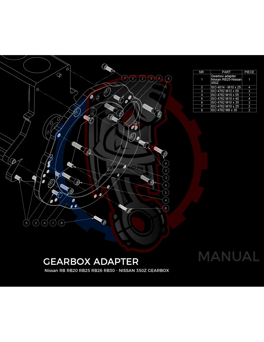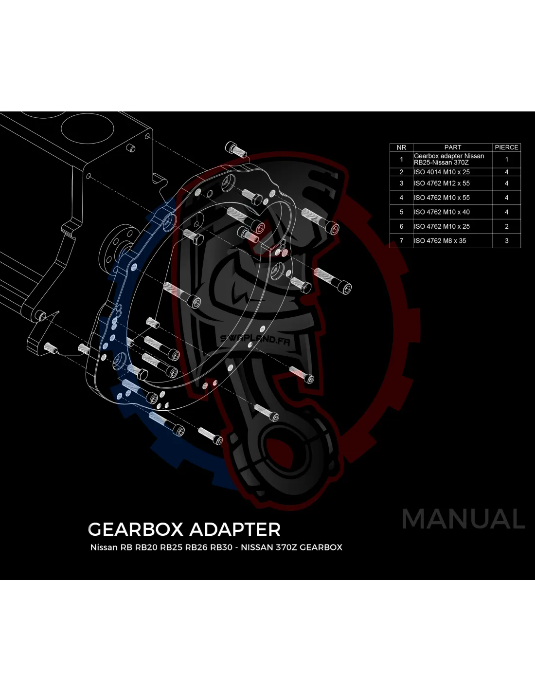 Le kit permet de monter sur un moteur Nissan RB20 RB25 RB26 RB30 une boite de vitesse NISSAN CD facilement avec sa plaque d'adaptation.
