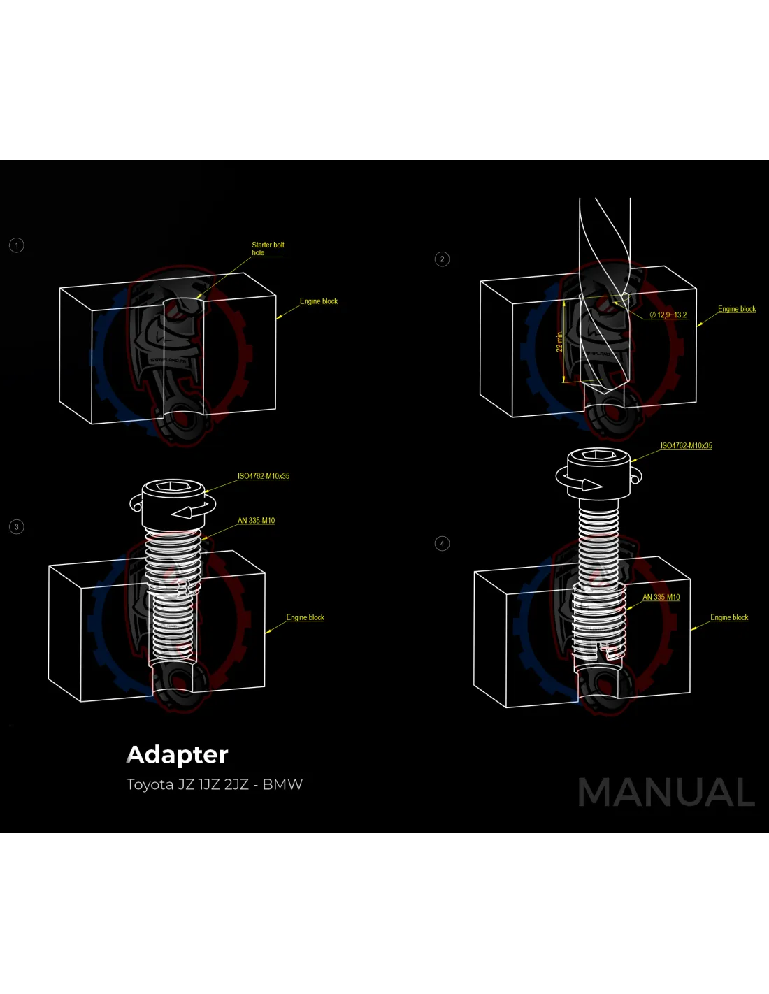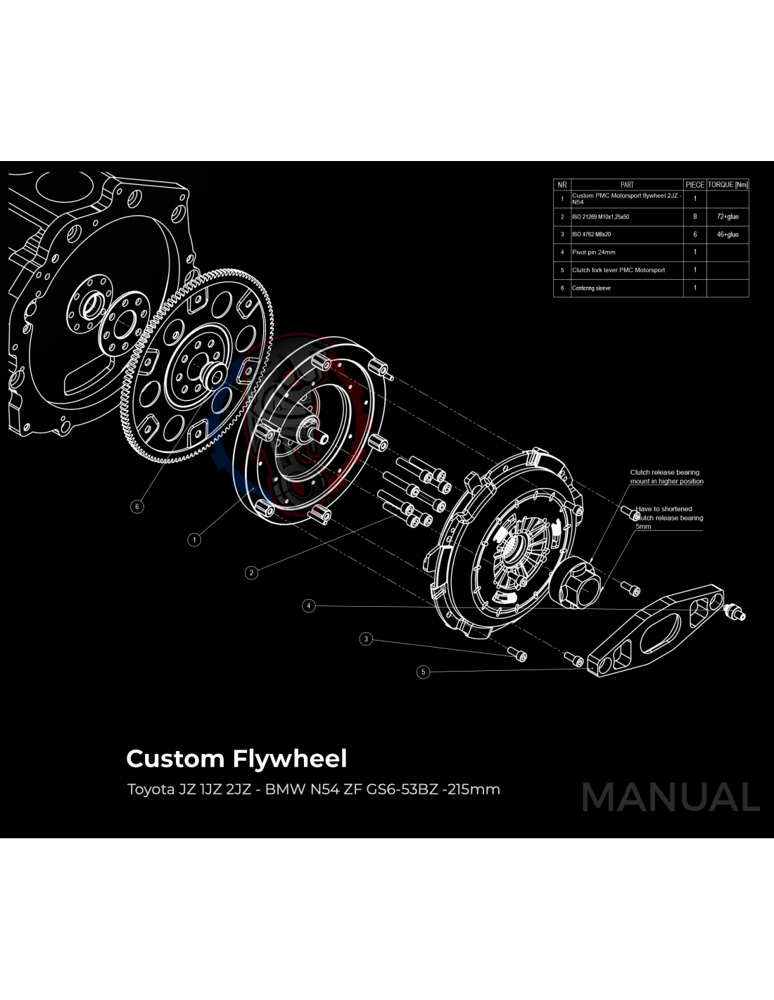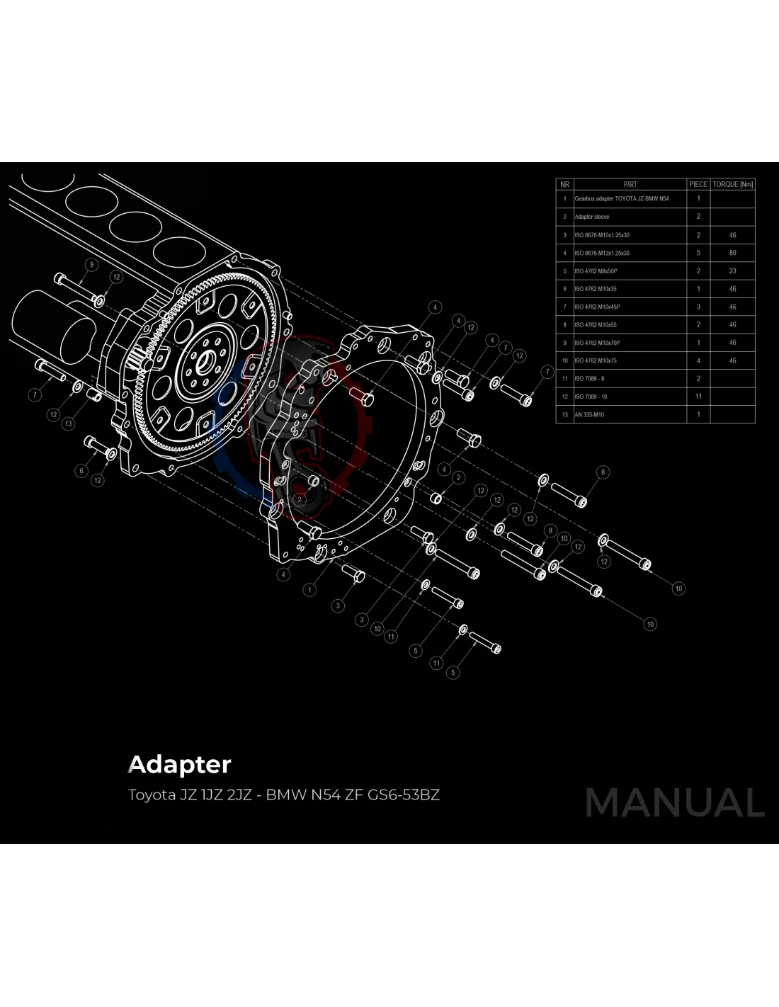 Le kit permet de monter sur un moteur Toyota 1JZ 2JZ une boite de vitesse BMW N54 facilement avec sa plaque d'adaptation.