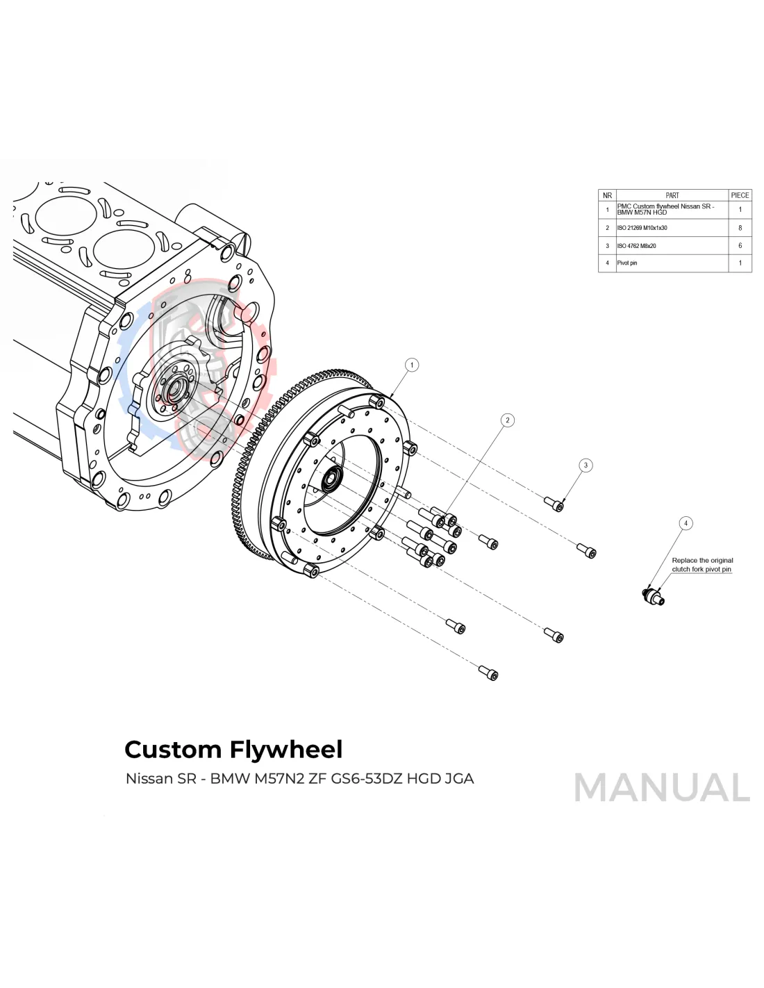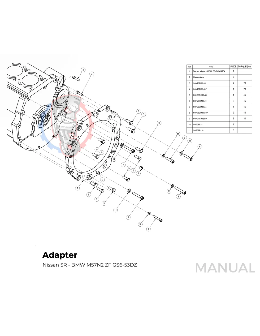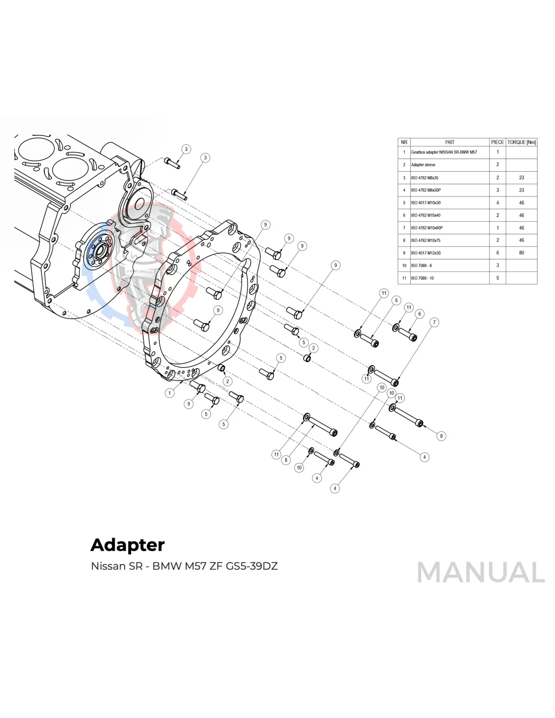 Le kit permet de monter sur un moteur Nissan SR SR20 SR20DET une boite de vitesse BMW M57 HGD JGA facilement avec sa plaque d'adaptation.