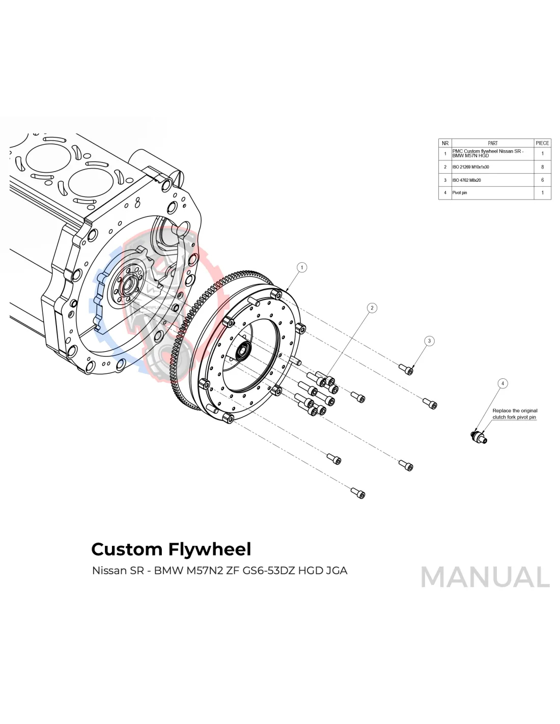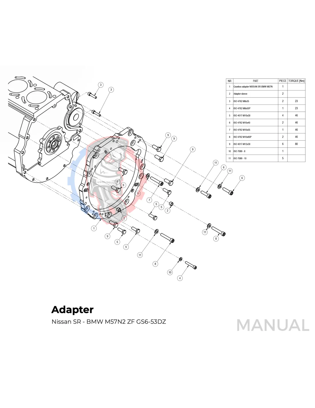 Le kit permet de monter sur un moteur Nissan SR SR20 SR20DET une boite de vitesse BMW M57 HGU HGK facilement avec sa plaque d'adaptation.