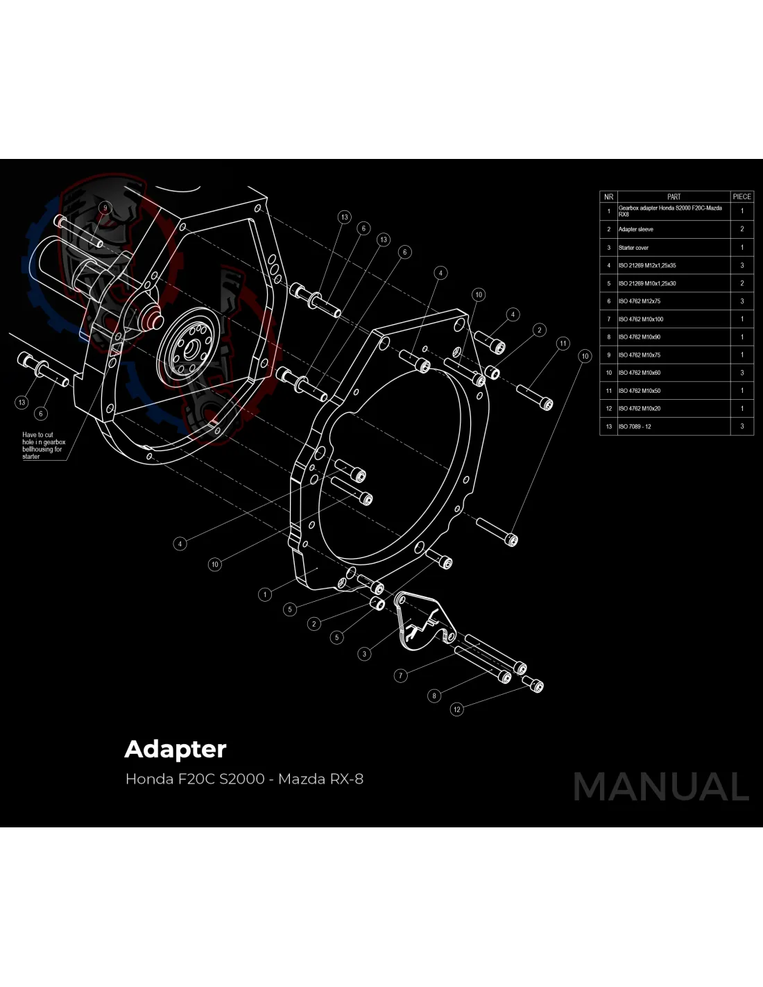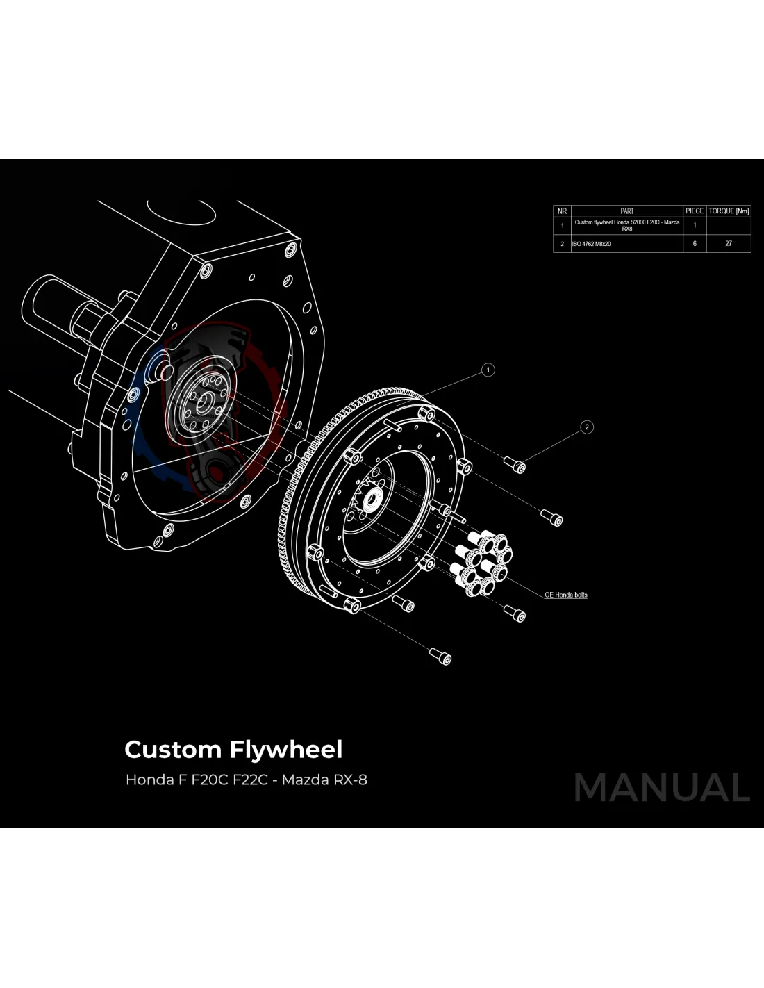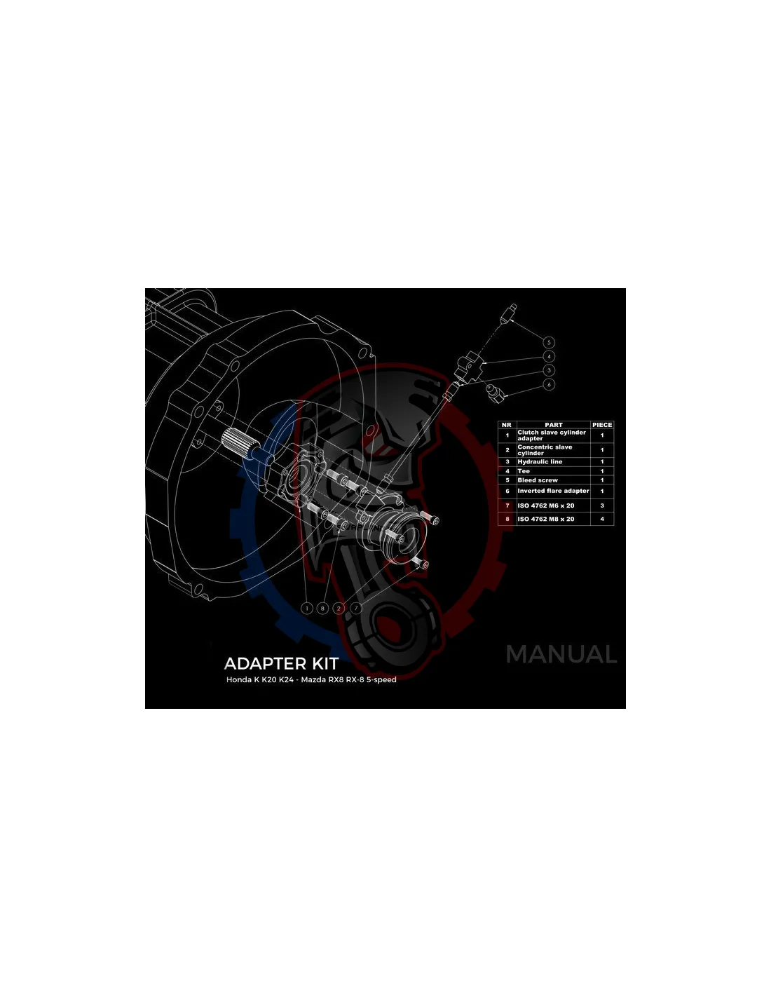 Le kit permet de monter sur un moteur Honda F F20C F22C (S2000) une boite de vitesse Mazda RX8 boite 5 vitesses facilement avec sa plaque d'adaptation.