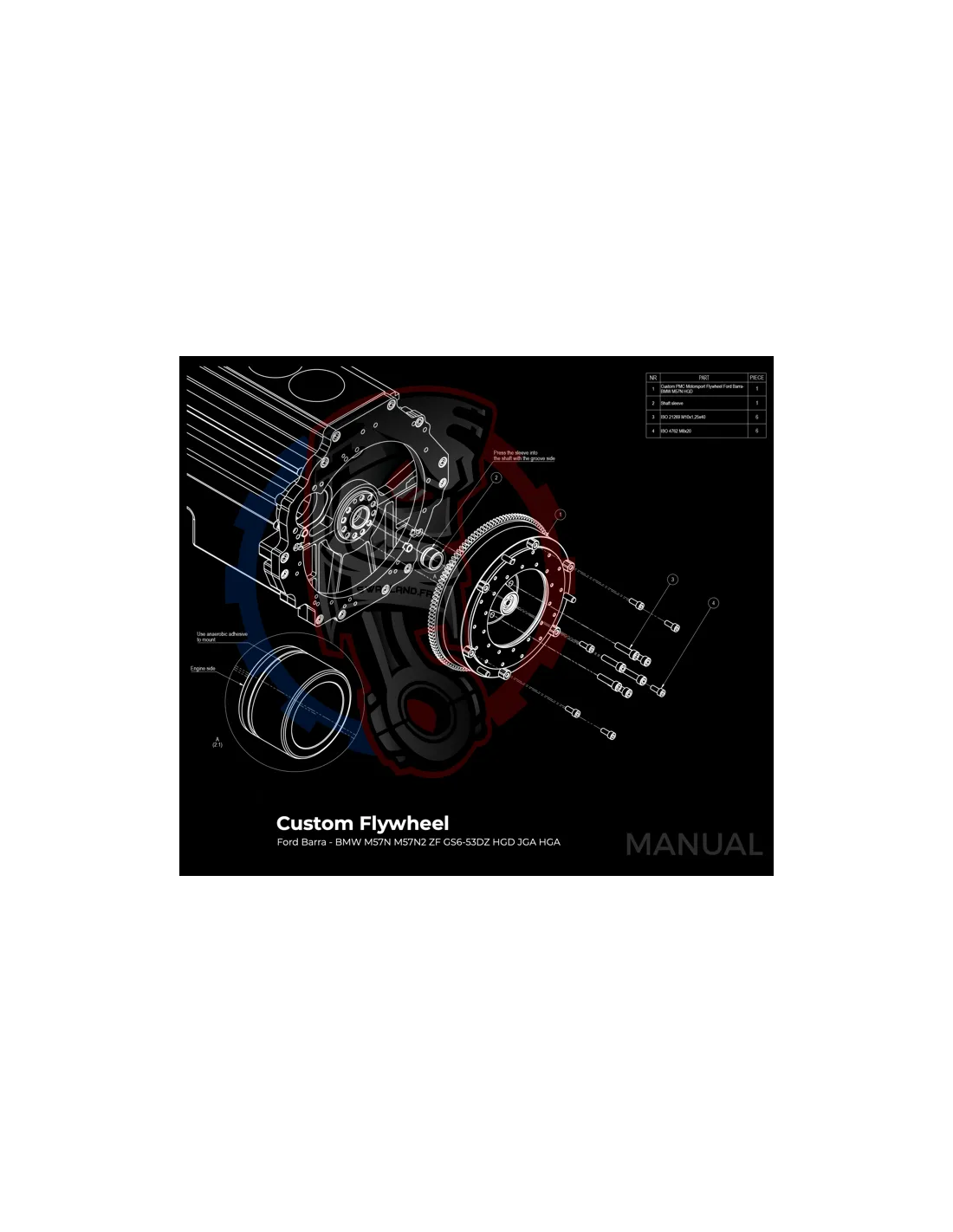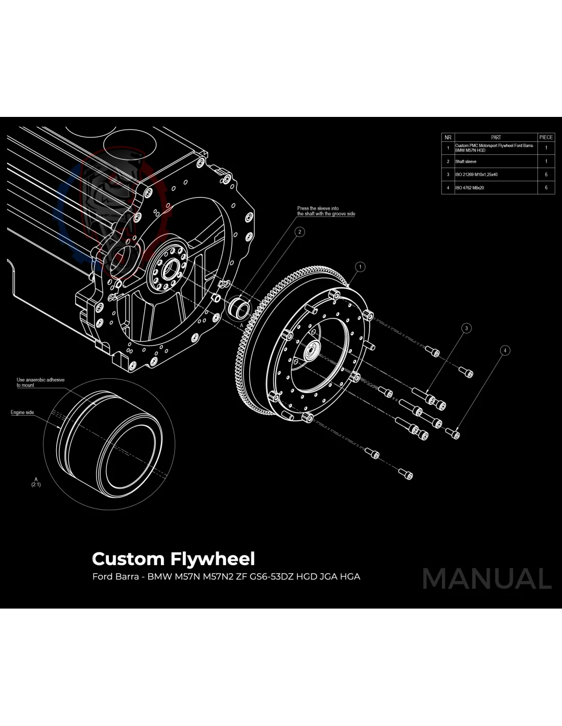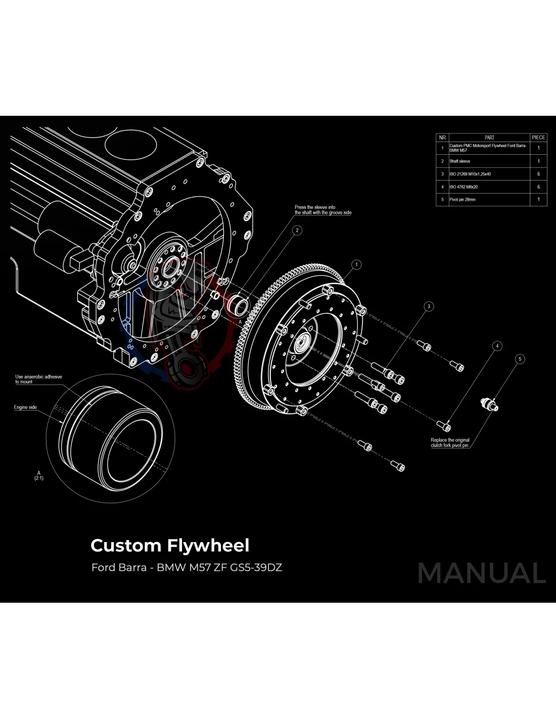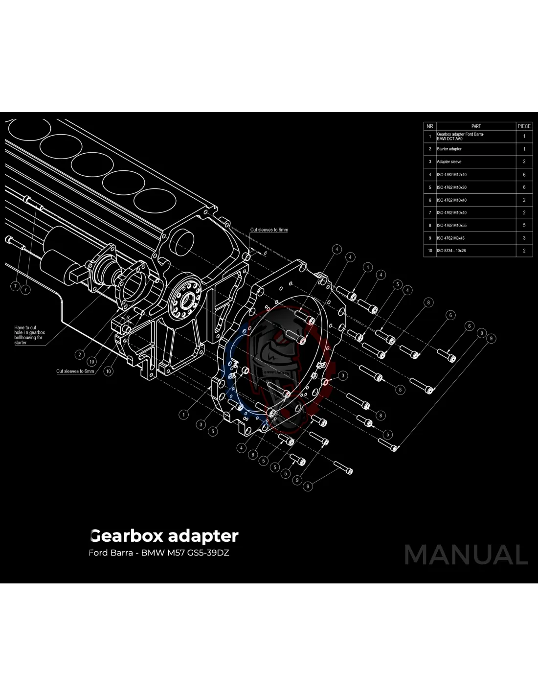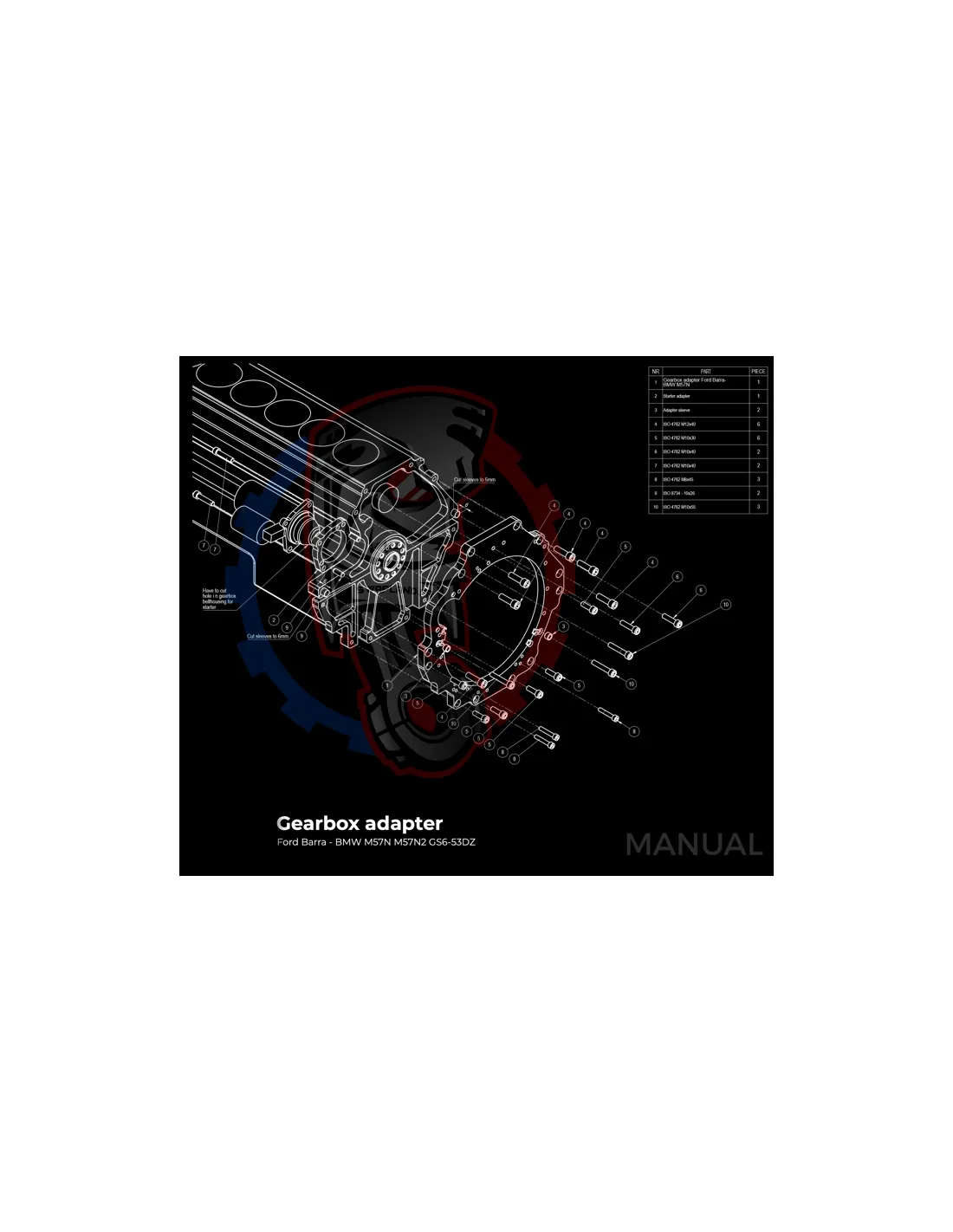 Le kit permet de monter sur un moteur Ford Barra une boite de vitesse BMW M57 facilement avec sa plaque d'adaptation.
