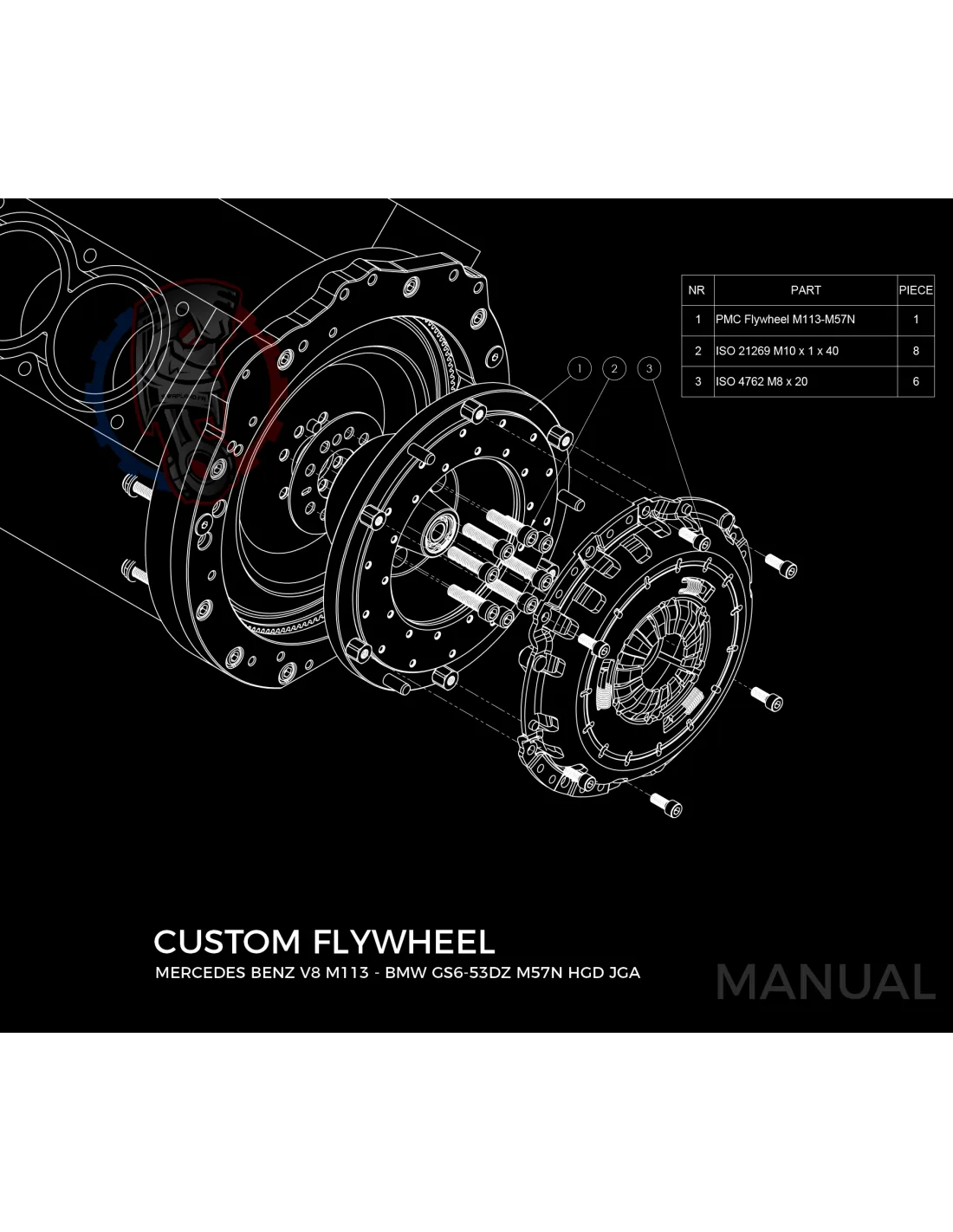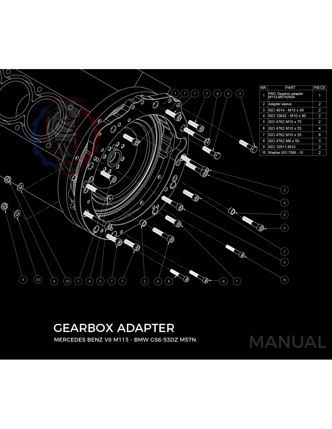 Le kit permet de monter sur un moteur Mercedes-Benz M112 M113 une boite de vitesse BMW M57N HGD JGA facilement avec sa plaque d'adaptation.