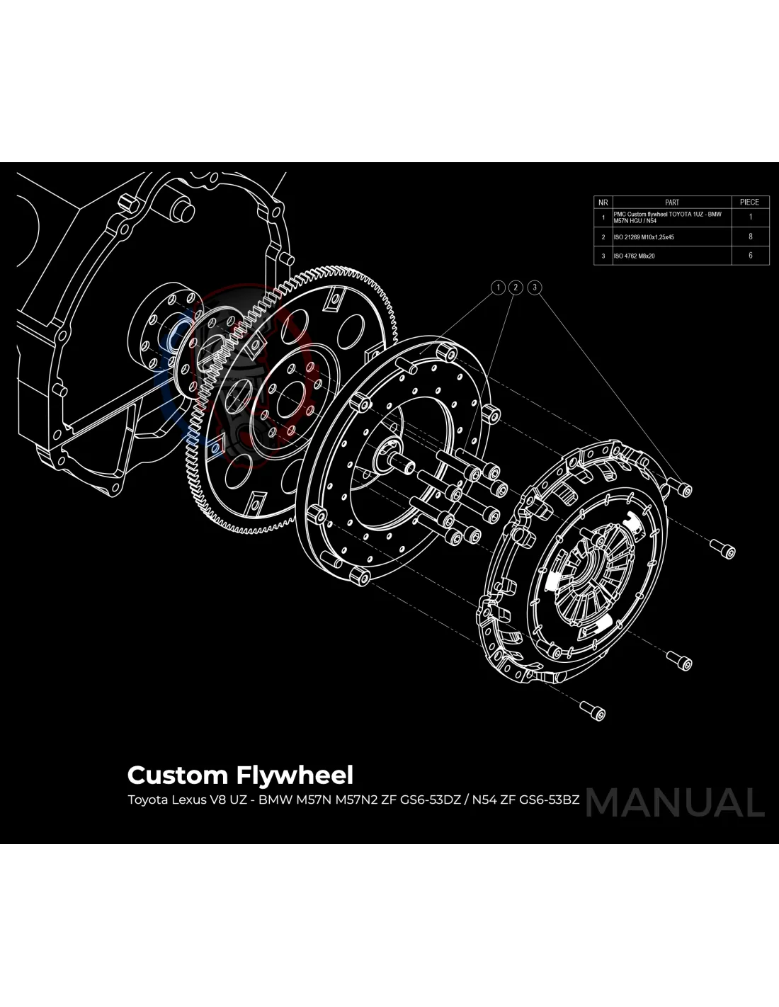 Le kit permet de monter sur un moteur Toyota Lexus V8 UZ 1UZ 3UZ une boite de vitesse BMW M57N HGU HGK / N54 facilement avec sa plaque d'adaptation.