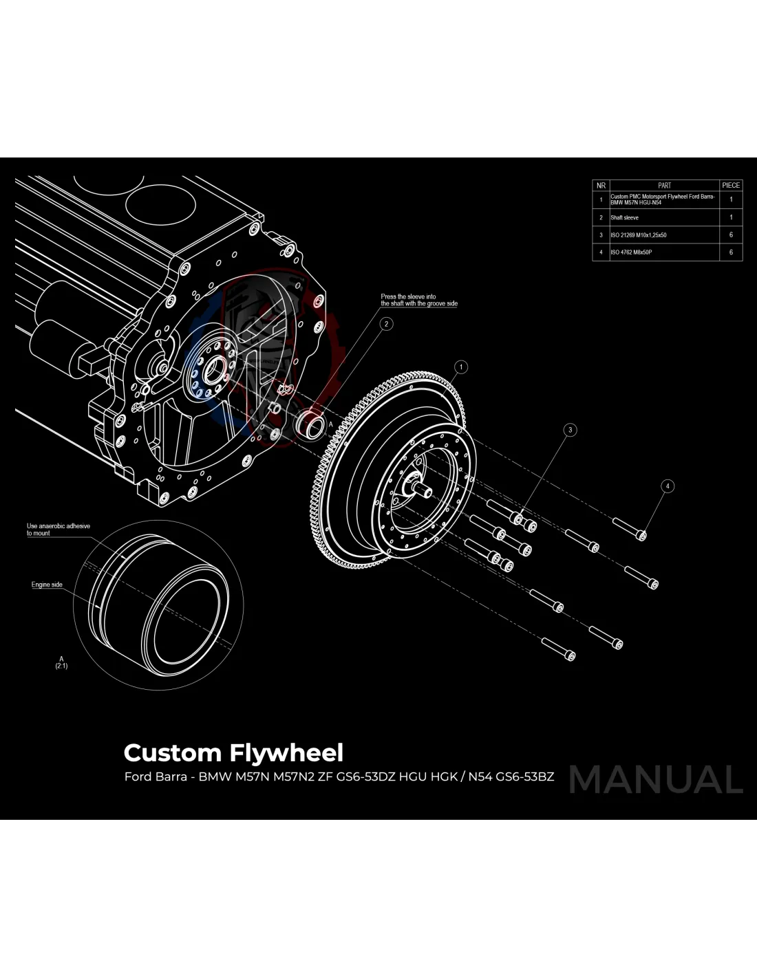 Le kit permet de monter sur un moteur Ford Barra une boite de vitesse BMW M57 - N54 facilement avec sa plaque d'adaptation.