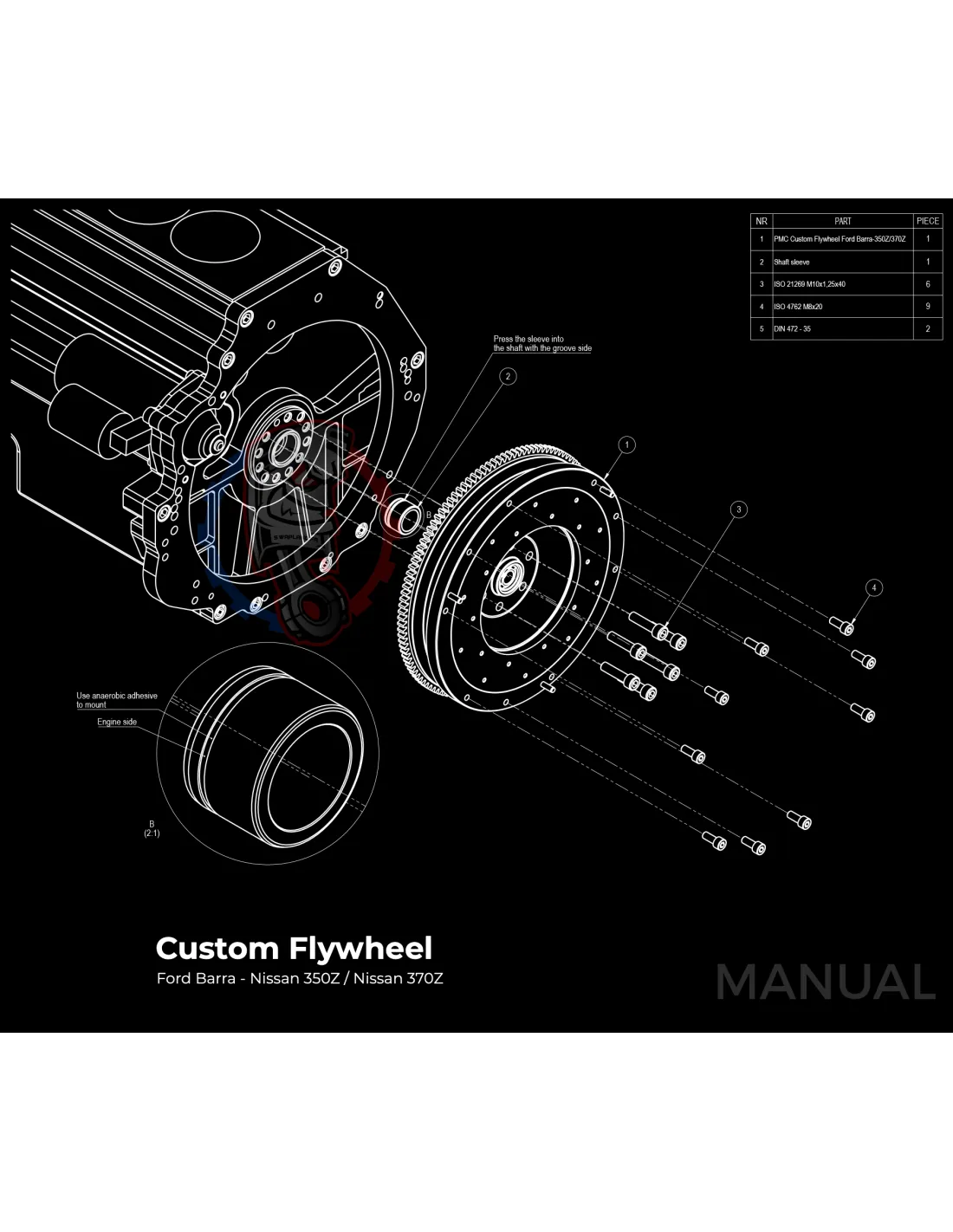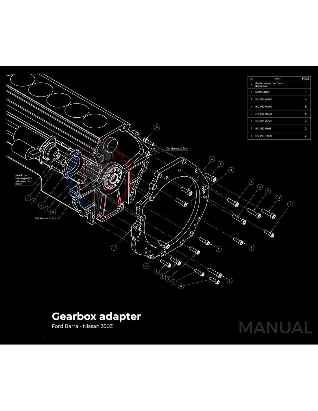 Kit conversion Stage 1 moteur Ford Barra pour boite de vitesse Nissan 350Z Z33 370Z Z34