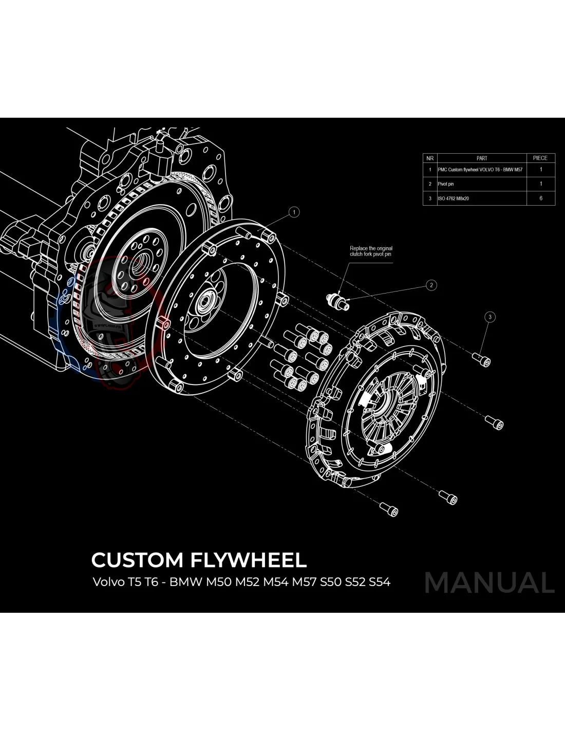 Swap embrayage pour boite de vitesse BMW M57N HGU HGK / N54 240 mm sur moteur Volvo Modular Whiteblock T5 T6