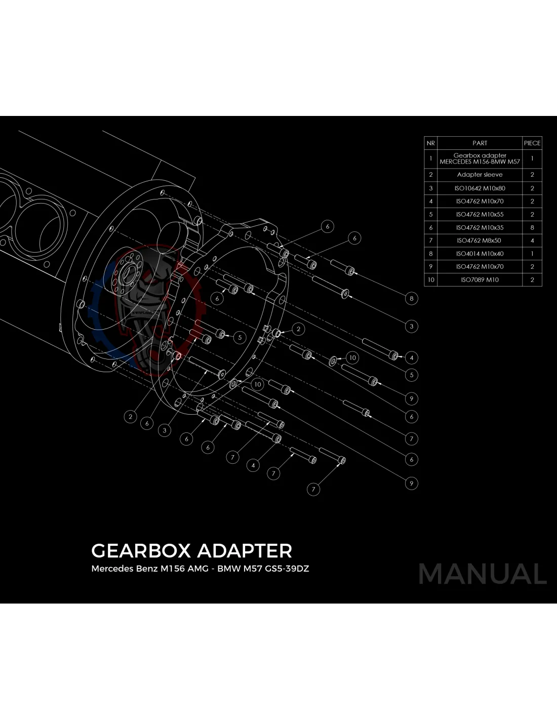Kit conversion Race Stage 2 moteur Mercedes-Benz M156 pour boite de vitesse BMW M57 / E46 S54 M3 184mm