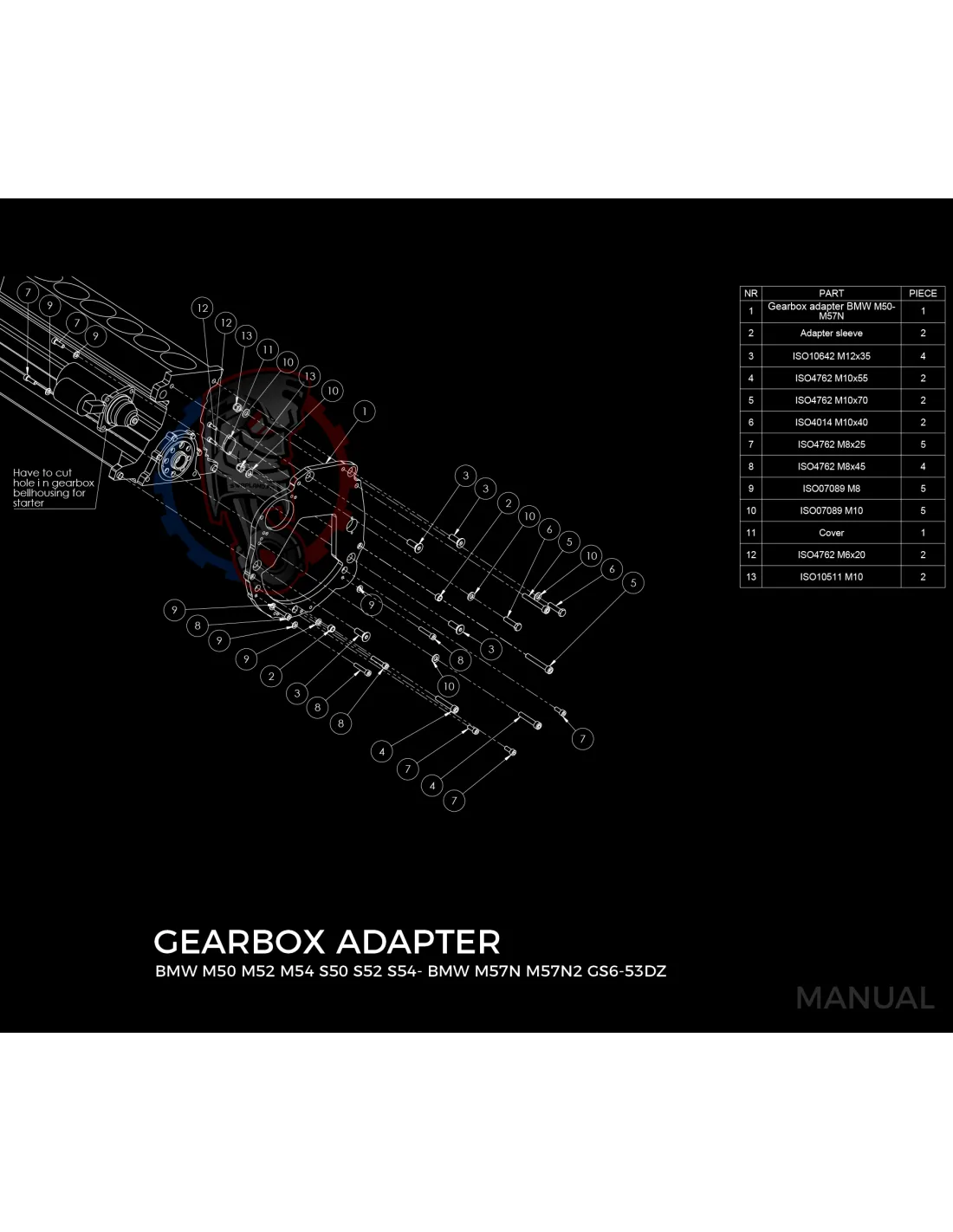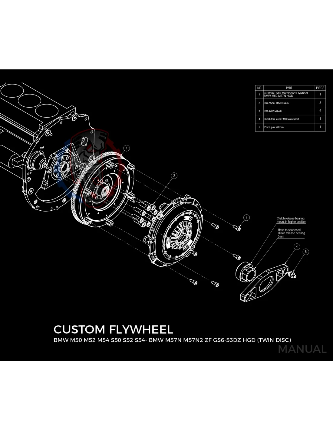 Kit conversion stage 2 moteur BMW M50 M52 M54 S50 S52 S54 pour boite de vitesse BMW M57N HGD JGA 215 mm:
