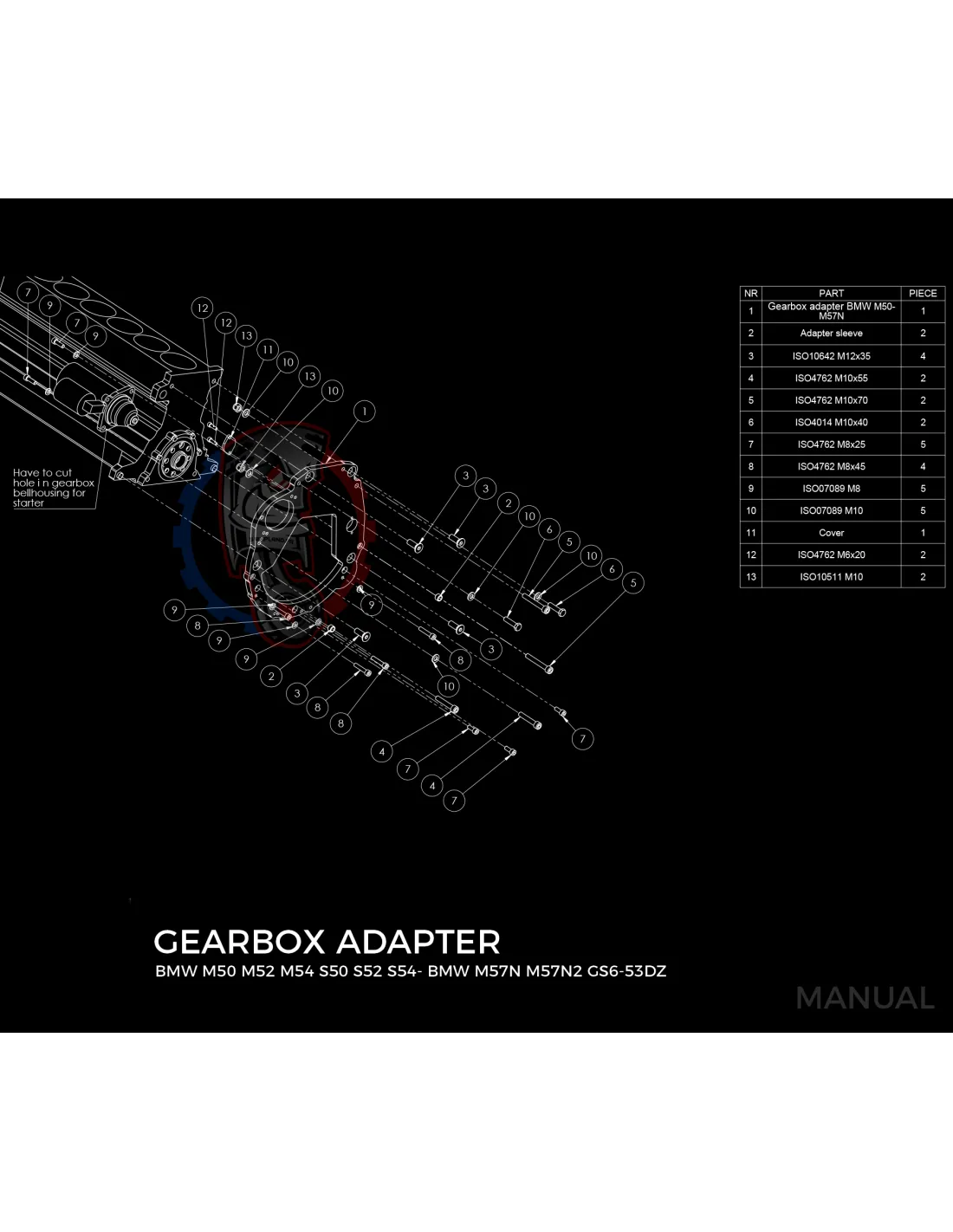 Kit conversion race Stage 2 moteur BMW M50 M52 M54 S50 S52 S54 pour boite de vitesse BMW M57N HGU HGK 184mm