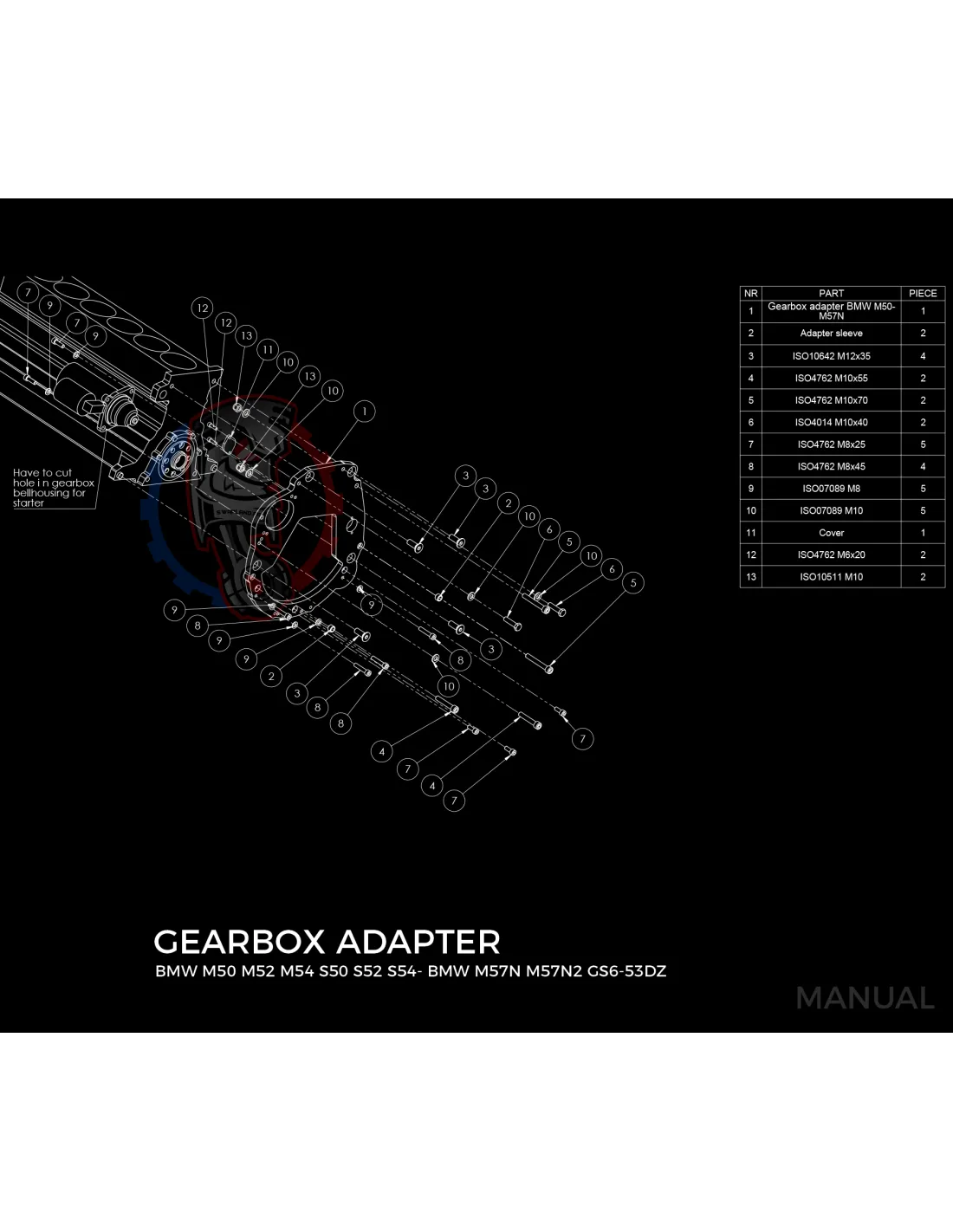 Kit conversion race Stage 3 moteur BMW M50 M52 M54 S50 S52 S54 pour boite de vitesse BMW M57N HGD JGA 184mm