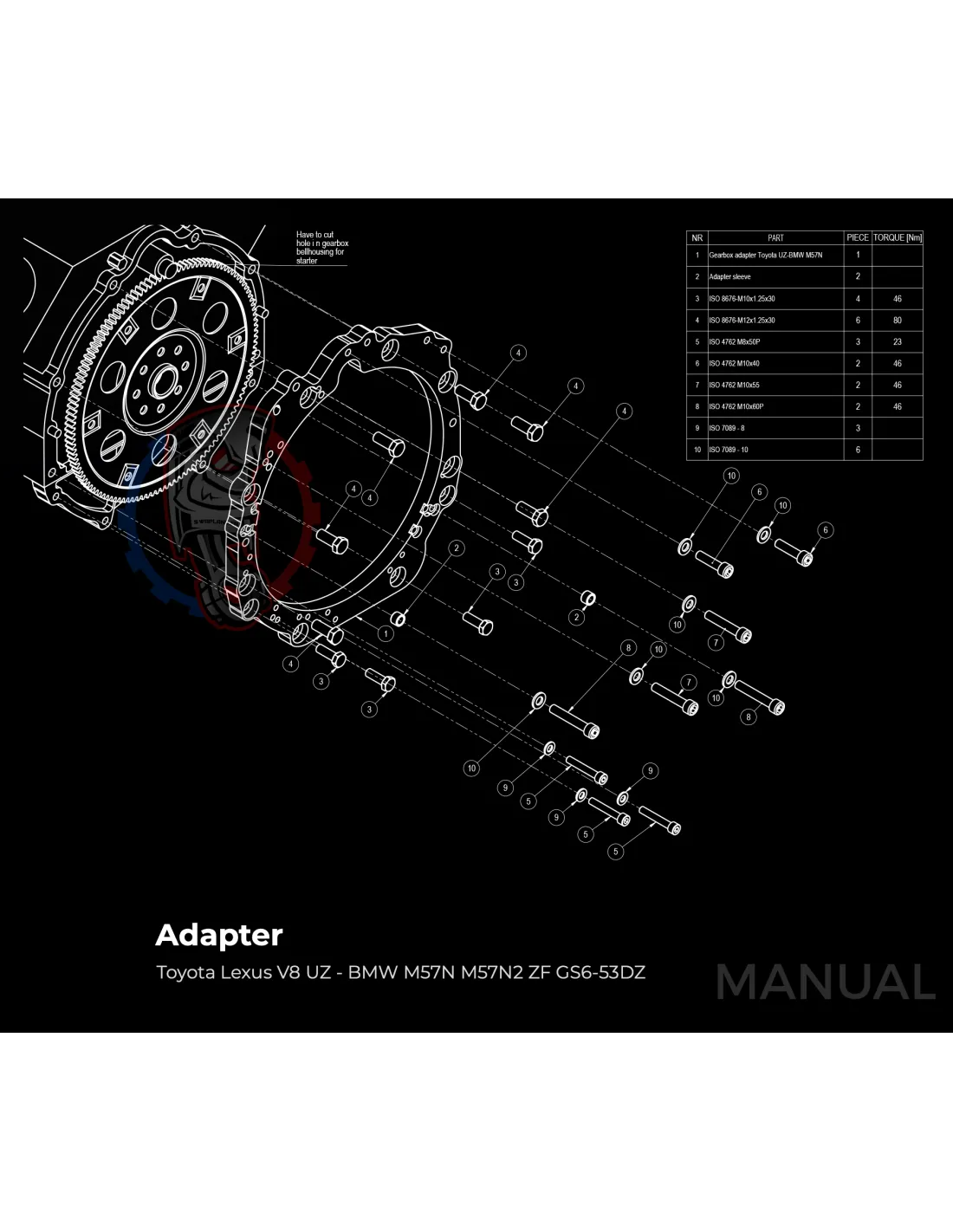 Kit conversion race Stage 2 moteur Toyota UZ pour boite de vitesse BMW N54 184mm