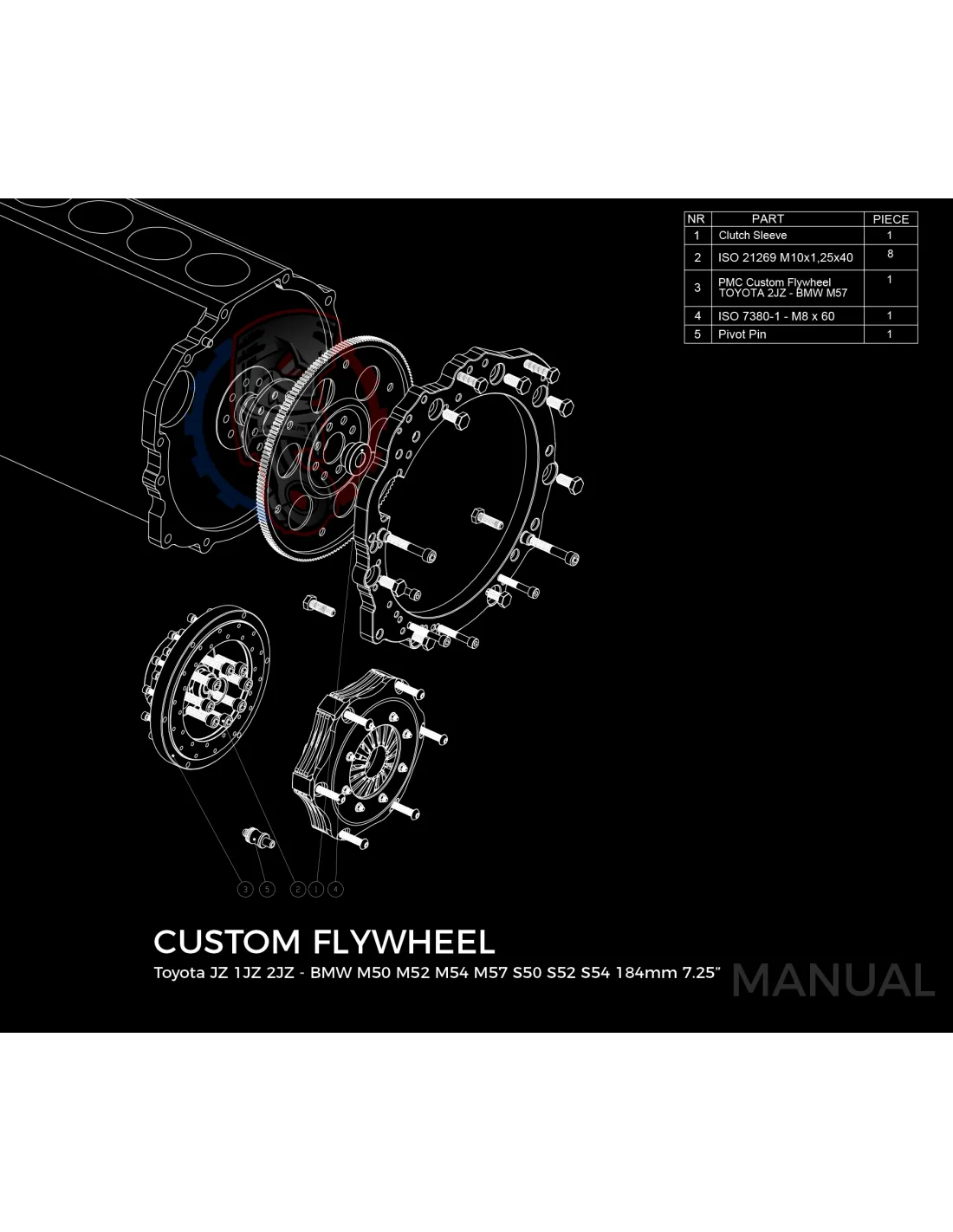 Kit conversion race Stage 2 moteur Toyota 1JZ 2JZ pour boite de vitesse BMW M50 S50 M52 S52 M54 184mm