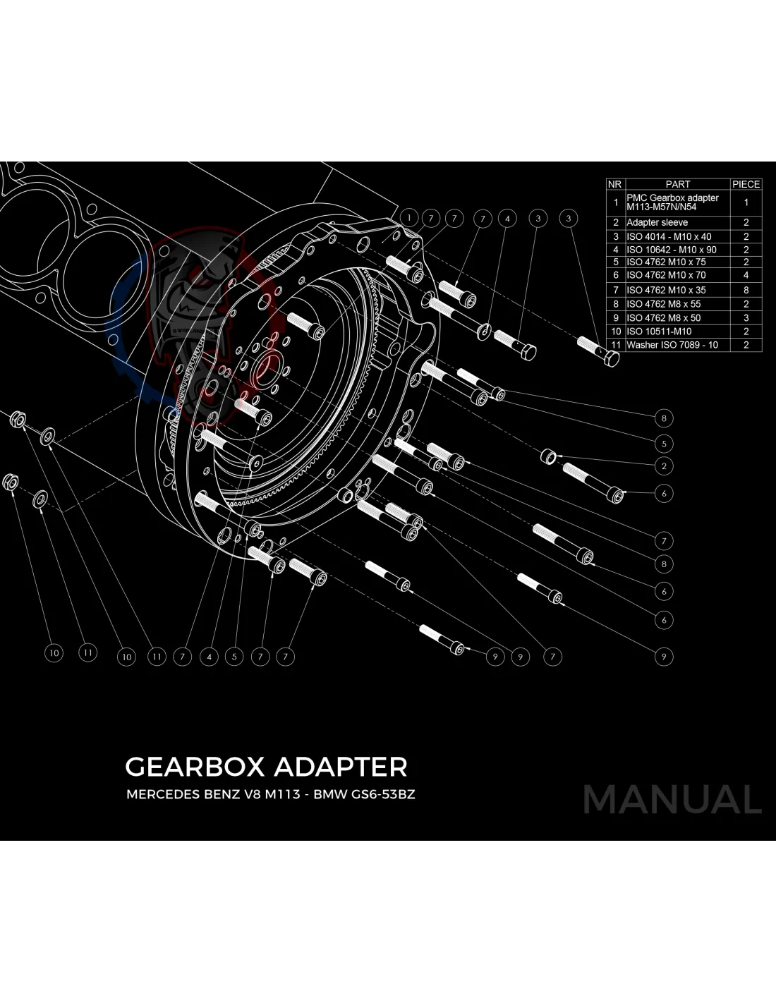 Kit conversion race Stage 3 moteur Mercedes-Benz M113 pour boite de vitesse BMW M57N HGU HGK 184mm