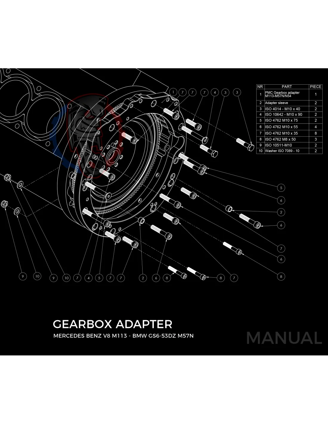 Kit conversion race Stage 2 moteur Mercedes-Benz M113 pour boite de vitesse BMW M57N HGD JGA 184mm