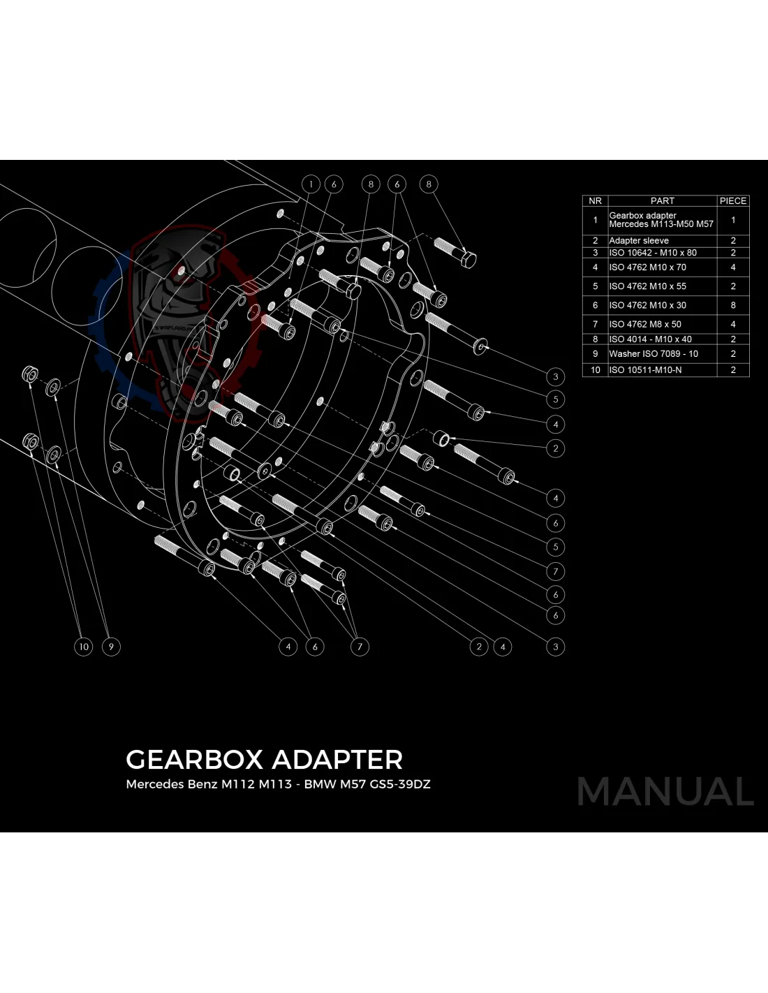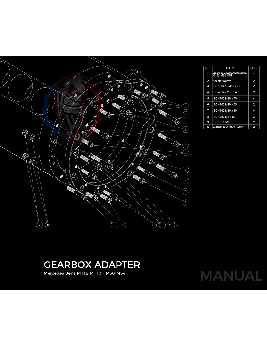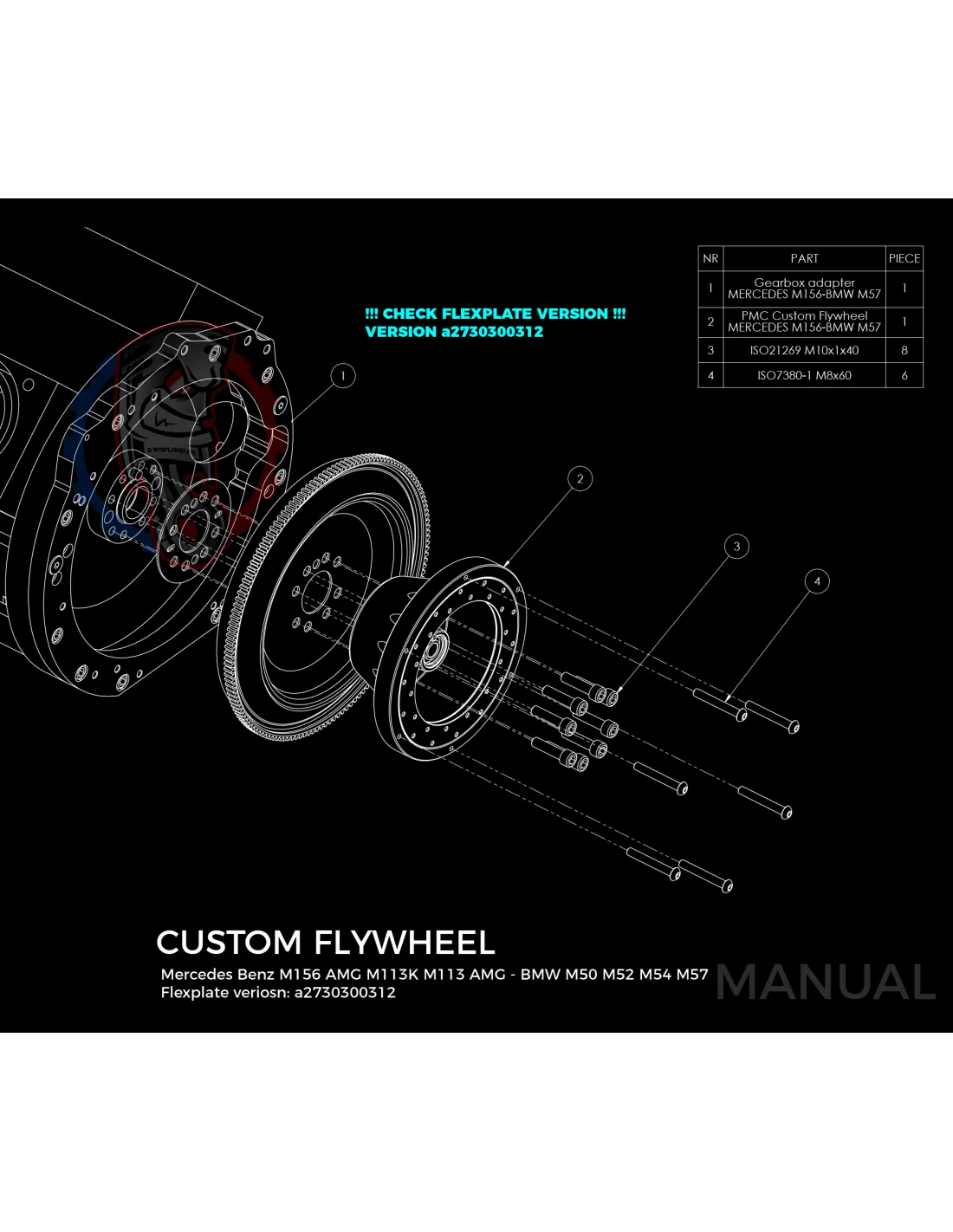 Kit conversion race Stage 3 moteur Mercedes-Benz M113 pour boite de vitesse BMW M57 / E46 S54 M3 184mm