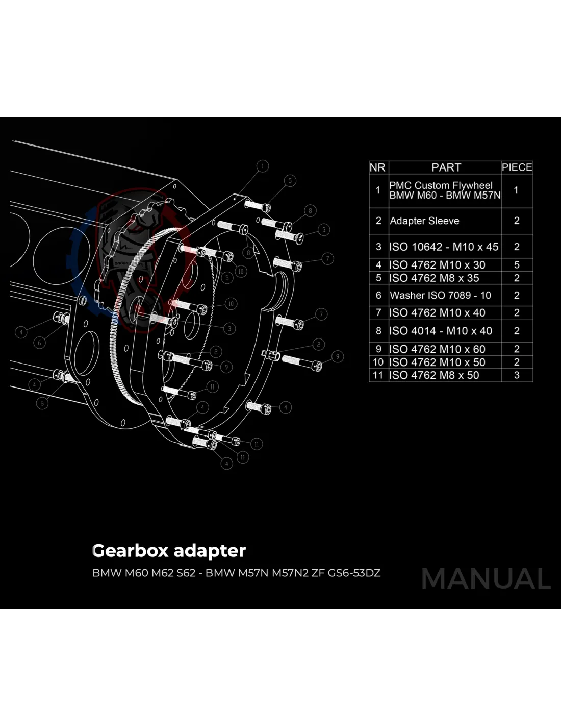 Kit conversion Race Stage 1 moteur BMW M62 S62 pour boite de vitesse BMW M57N HGD JGA 240mm