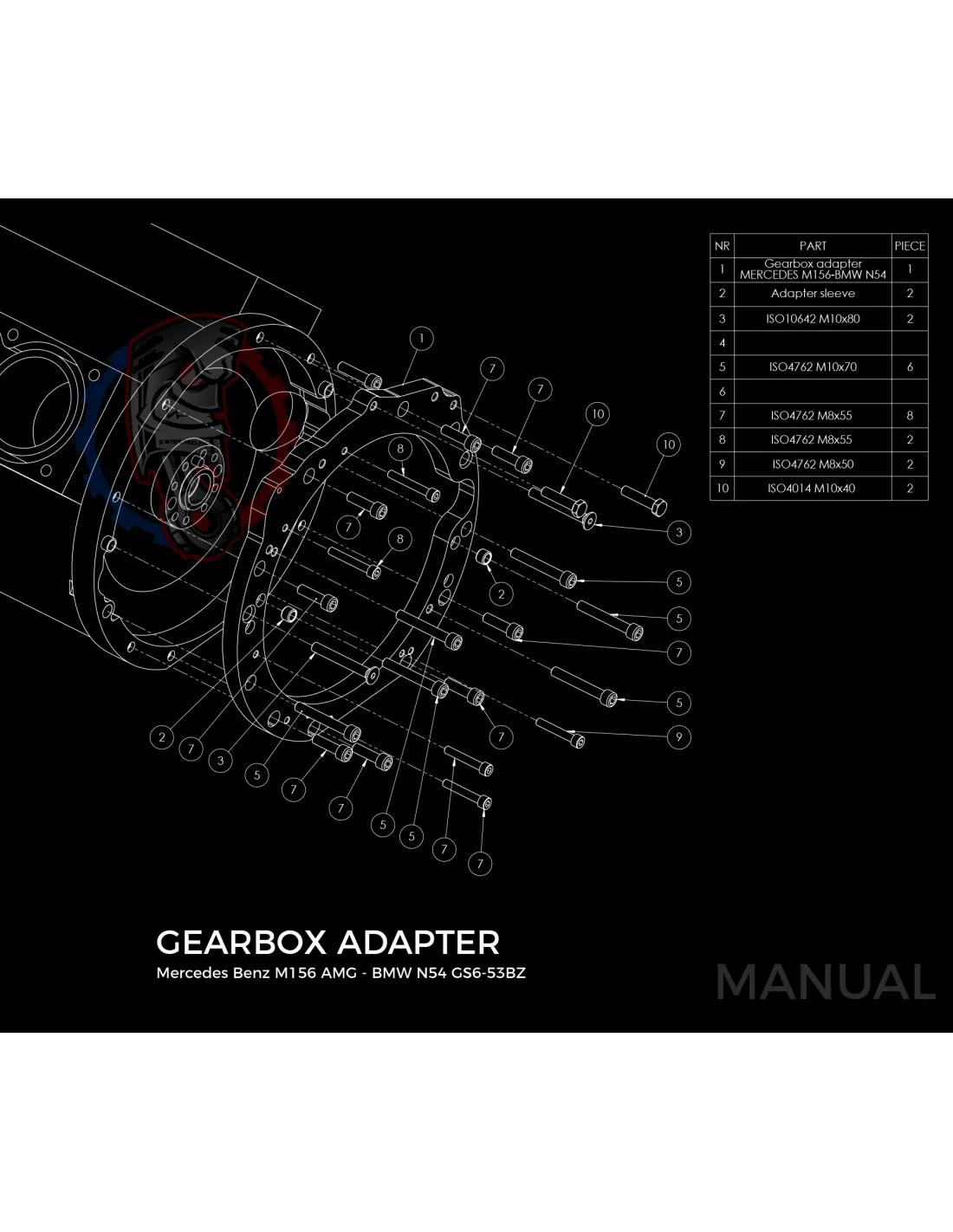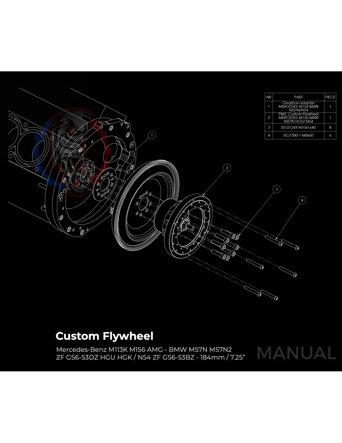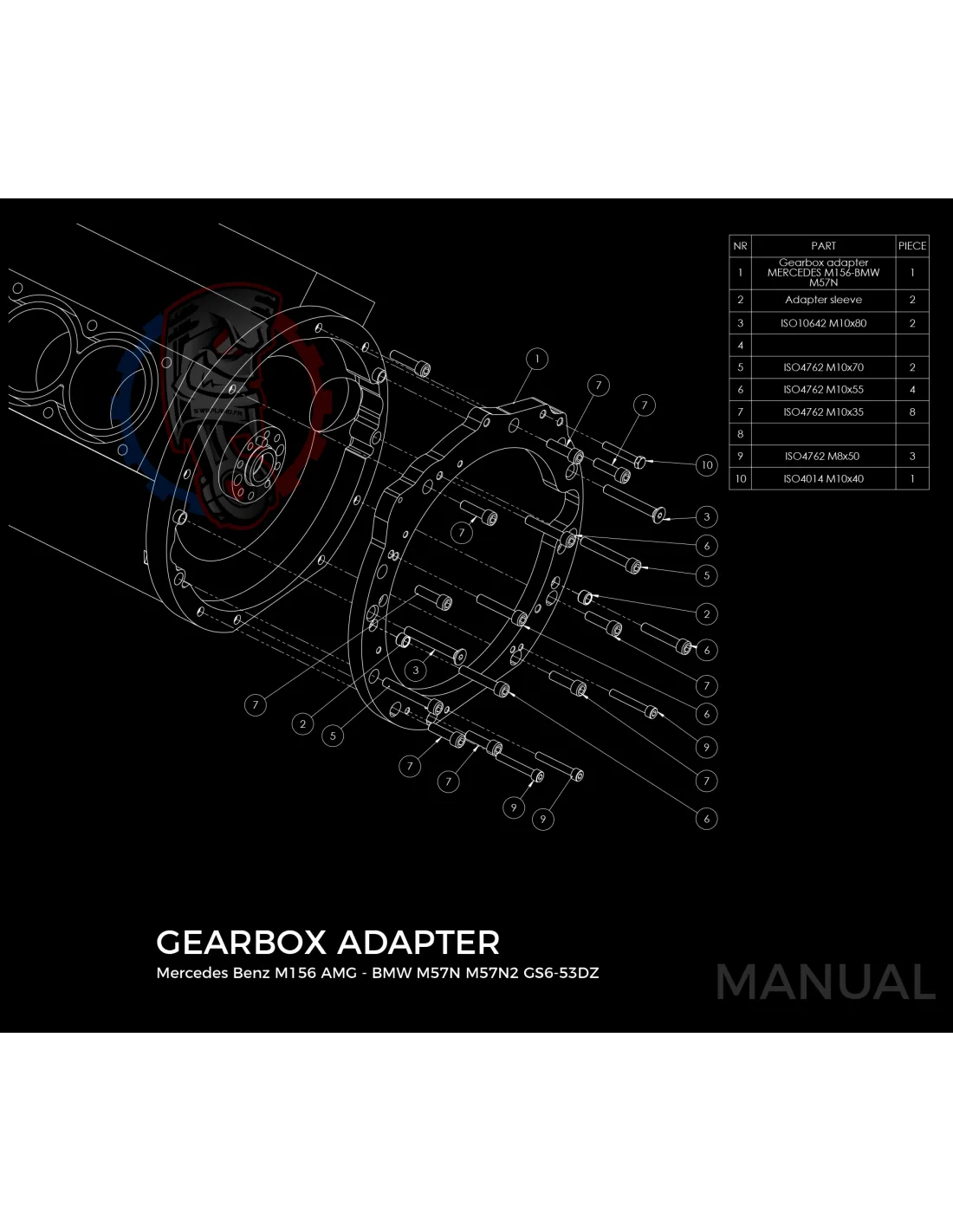Kit conversion Race Stage 2 moteur Mercedes-Benz M156 pour boite de vitesse BMW M57N HGU HGK / N54 184mm