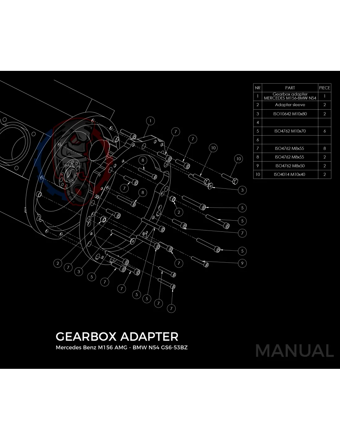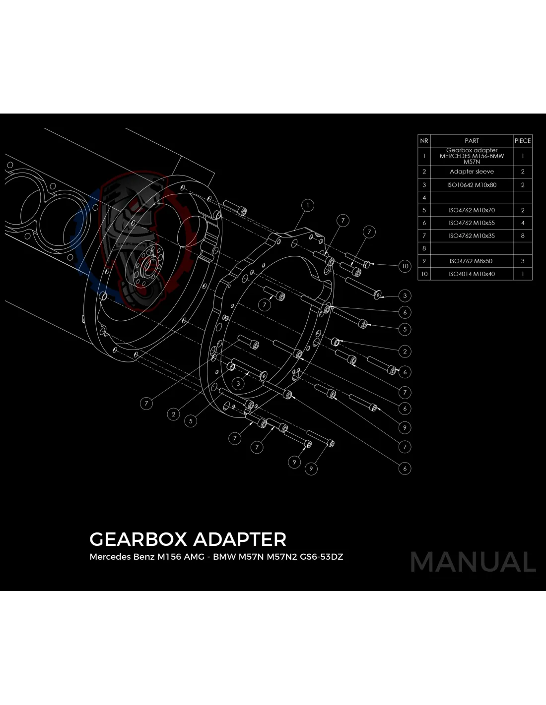 Kit conversion race Stage 3 moteur Mercedes-Benz M156 pour boite de vitesse BMW M57N HGU HGK / N54 184mm