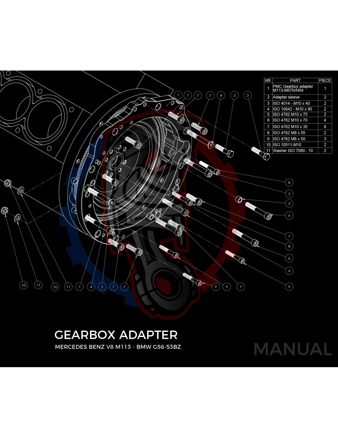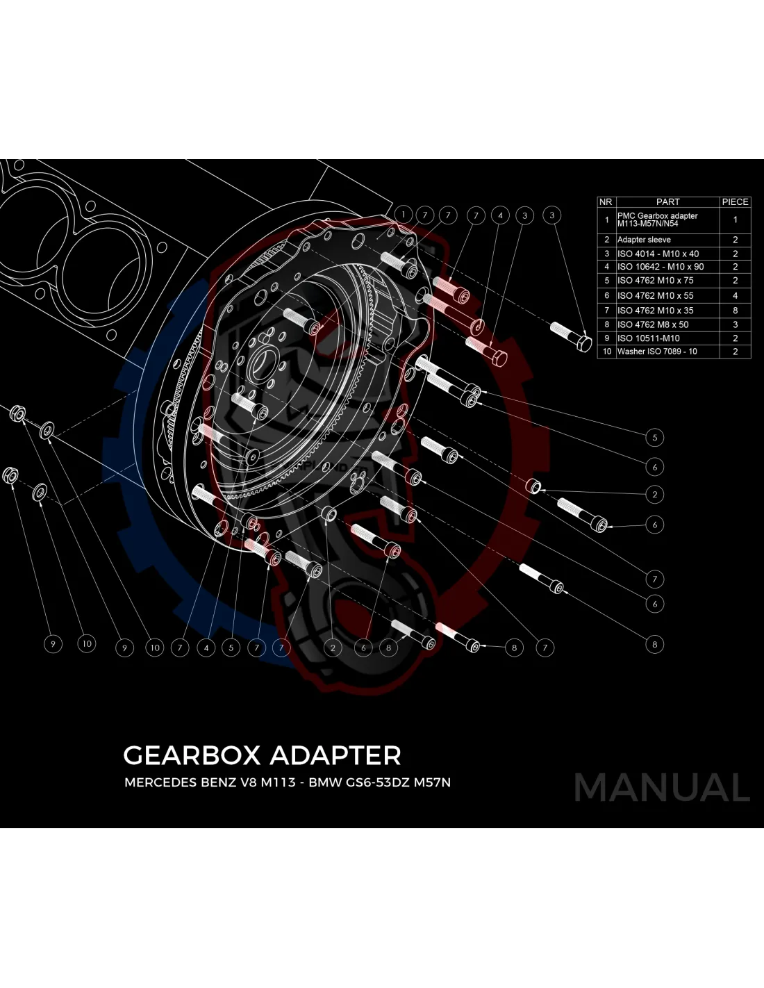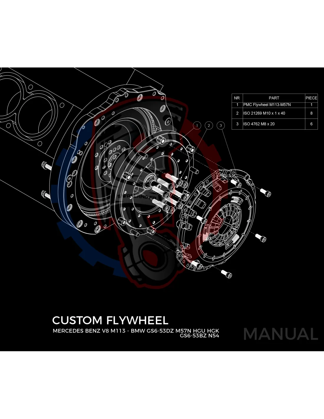 Kit conversion Stage 1 moteur Mercedes-Benz M112 M113 M113K pour boite de vitesse BMW M57N2 6-speed HGU HGK / N54 - 240mm