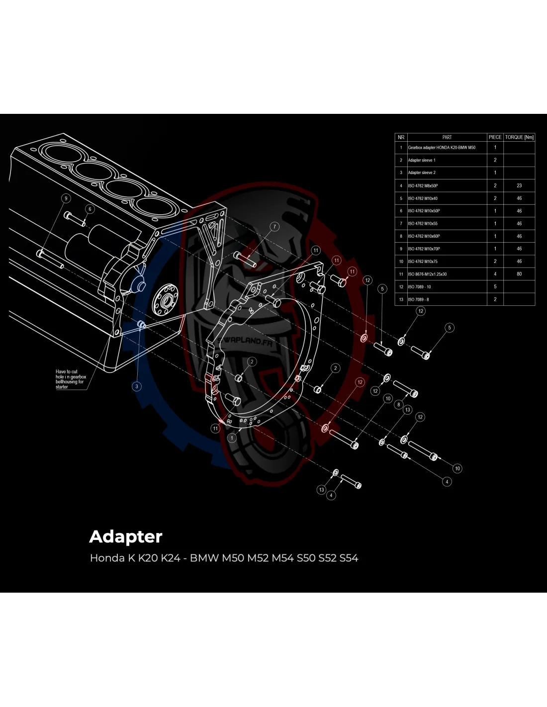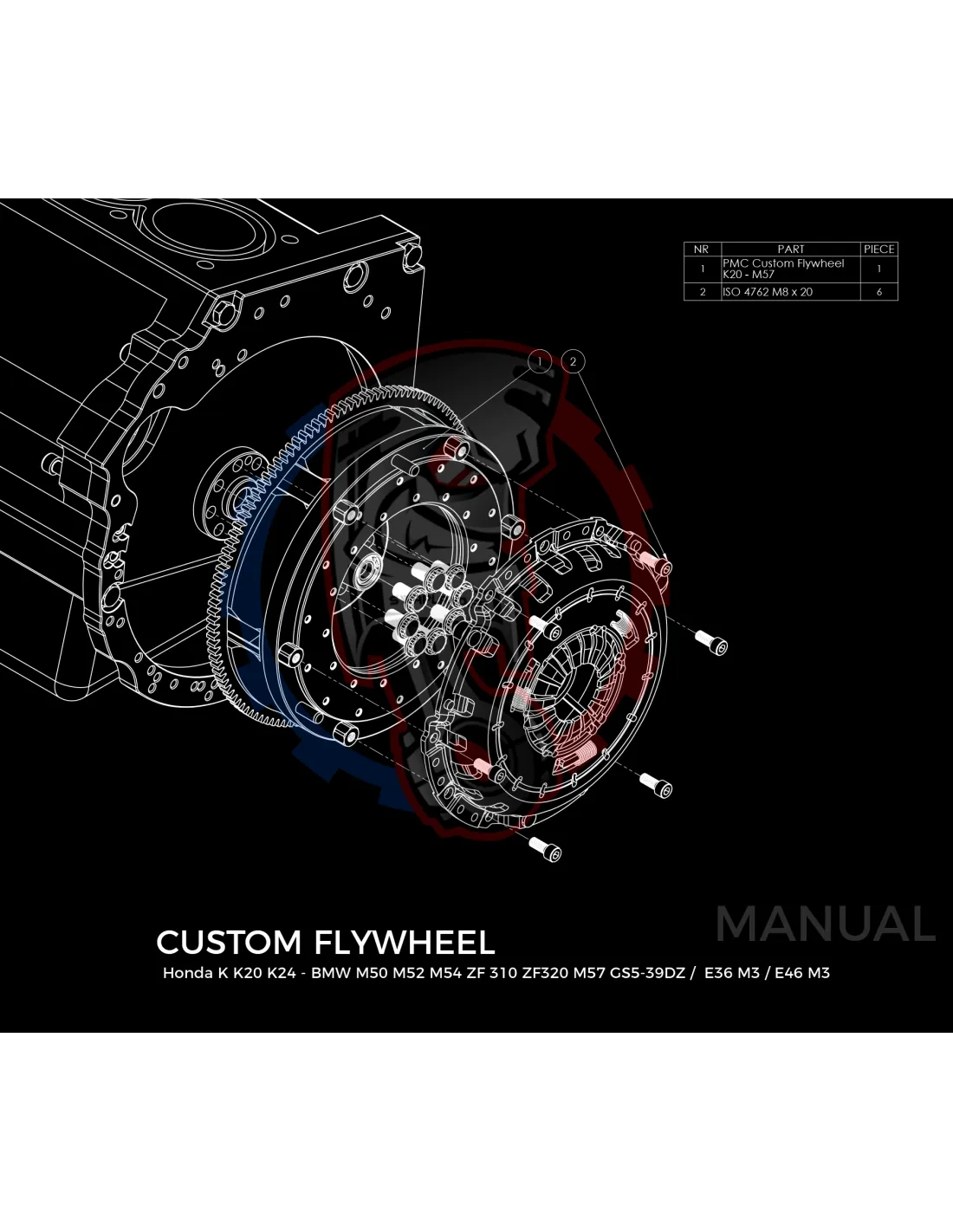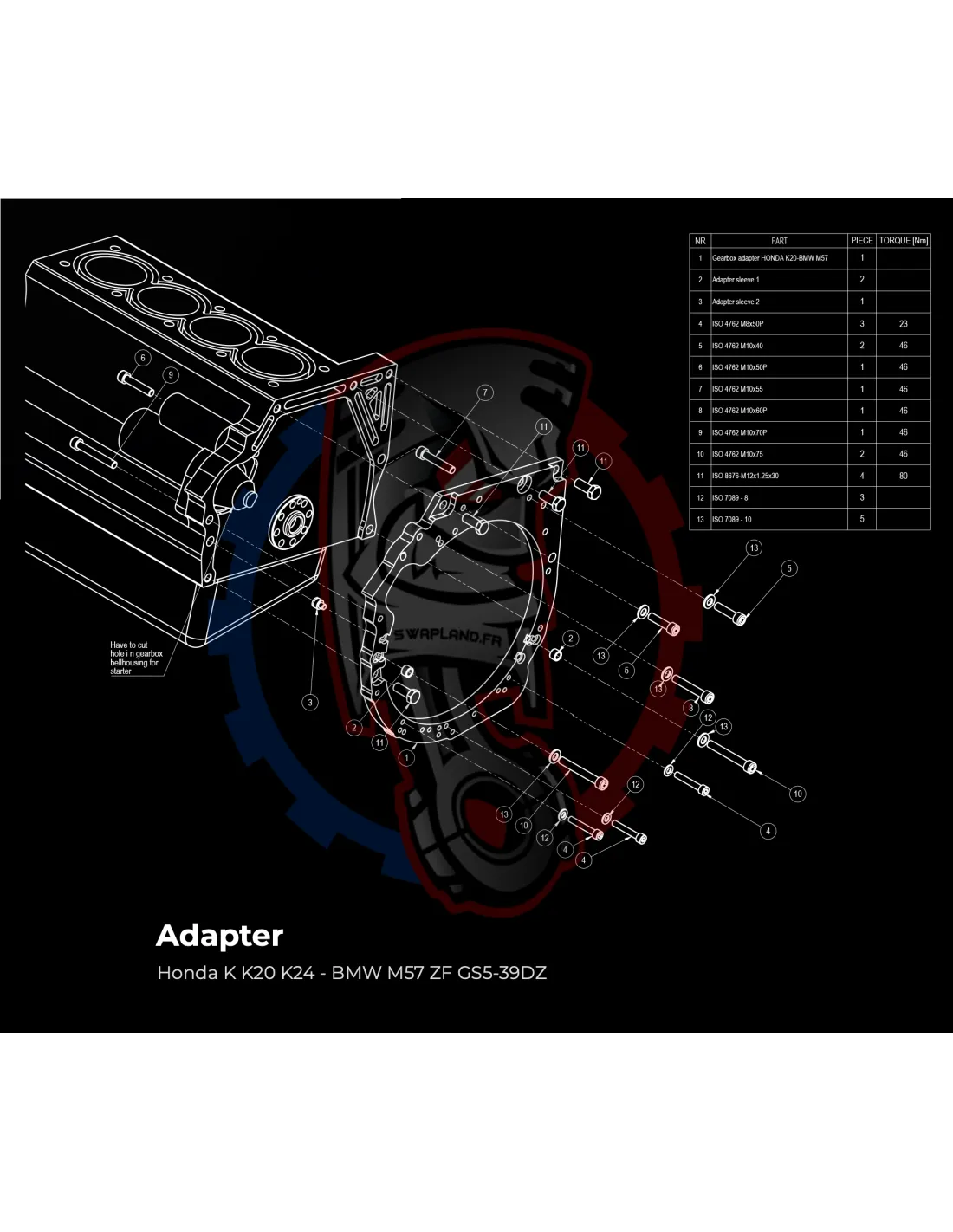 Kit conversion Stage 1 moteur Honda K K20 K24 pour boite de vitesse BMW M57 / E46 S54 M3 - 240mm