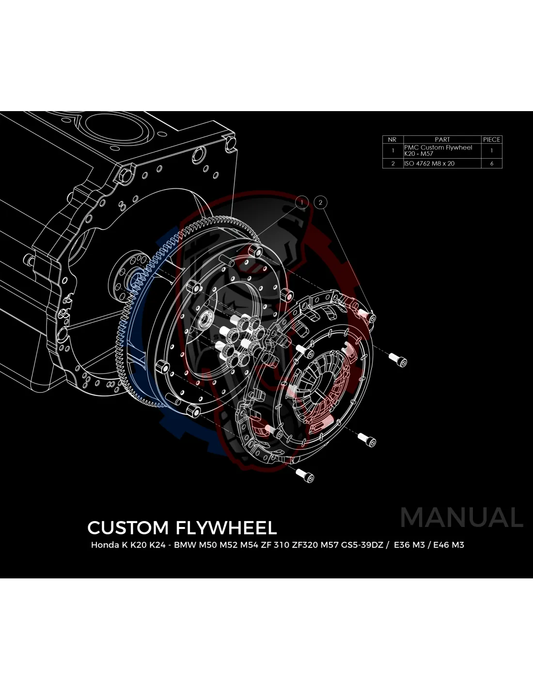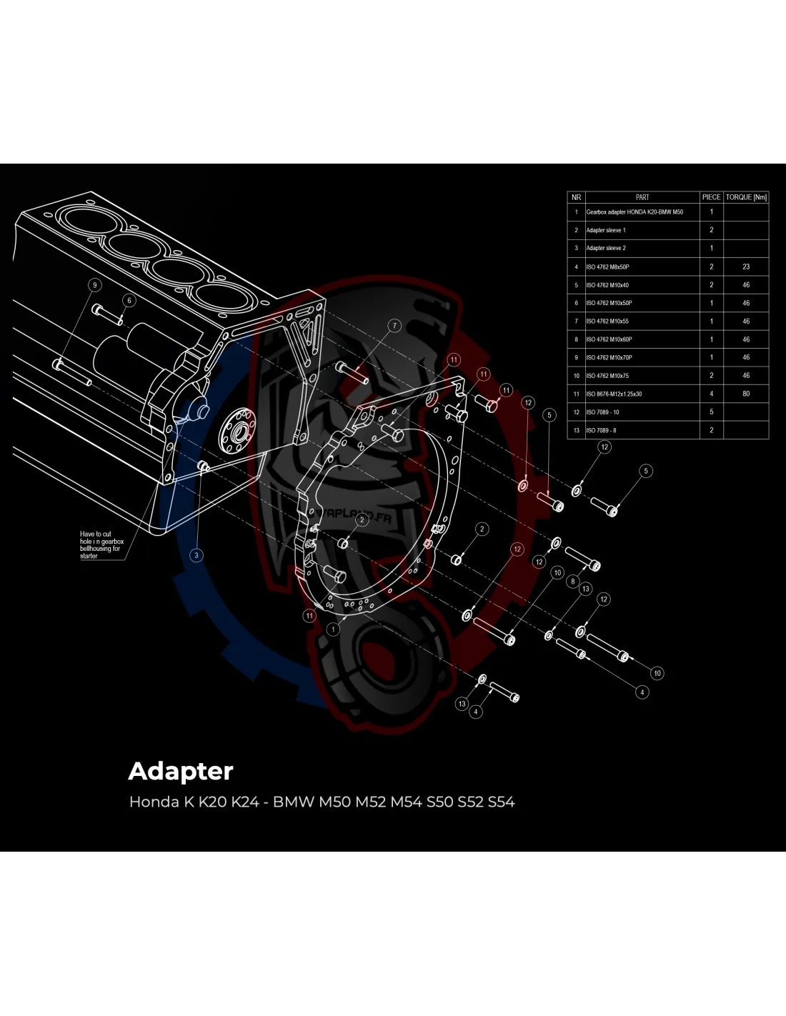 Kit conversion Race Stage 1 moteur Honda K K20 K24 pour boite de vitesse BMW M57 / E46 S54 M3 - 240mm