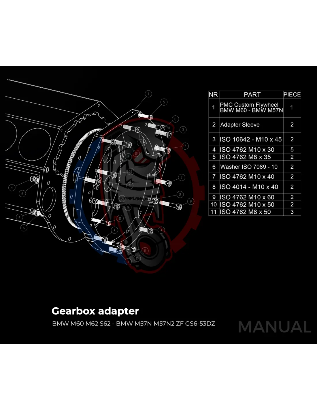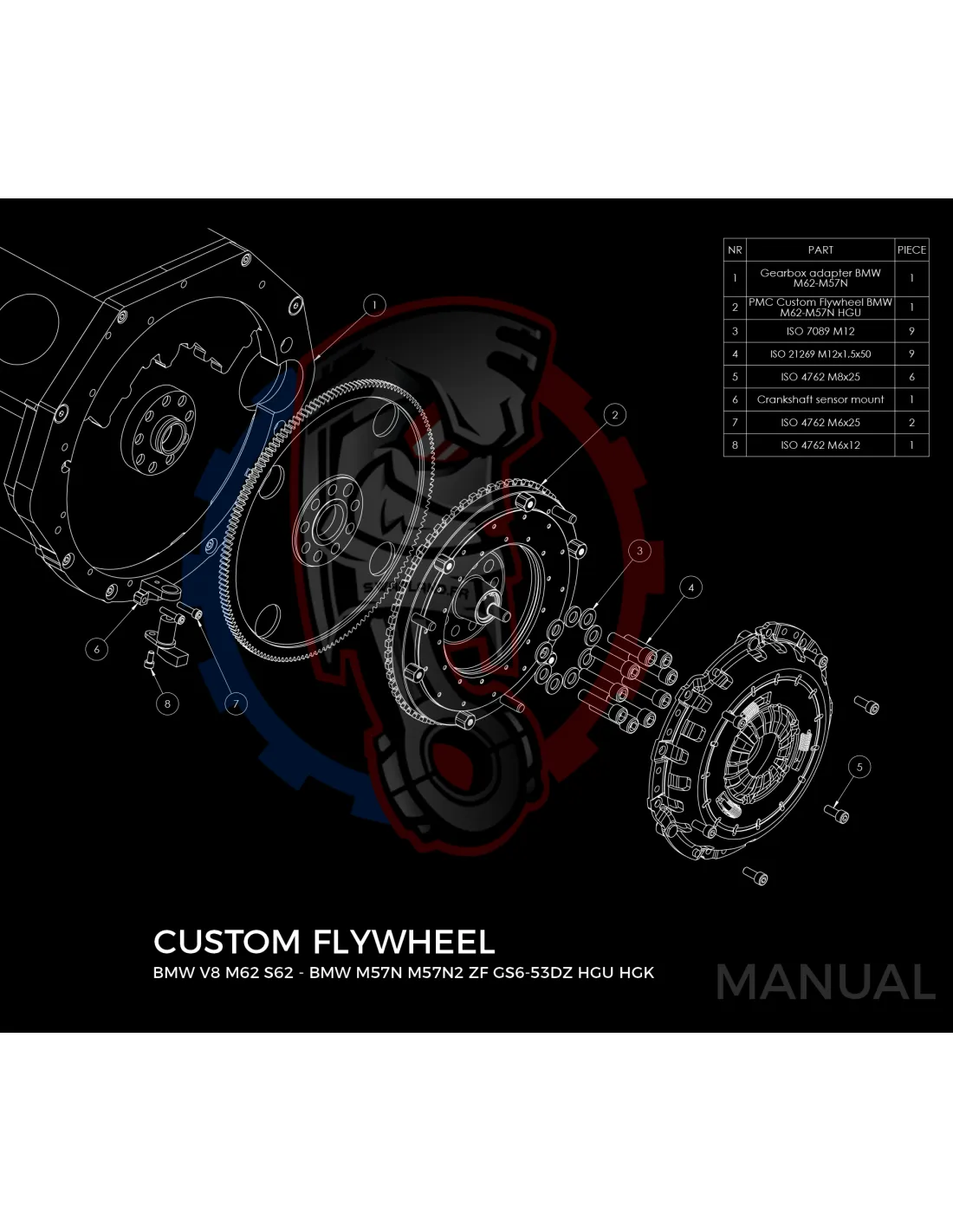 Kit conversion Race Stage 1 moteur BMW V8 M62 pour boite de vitesse BMW M57N2 HGU HGK - 240mm