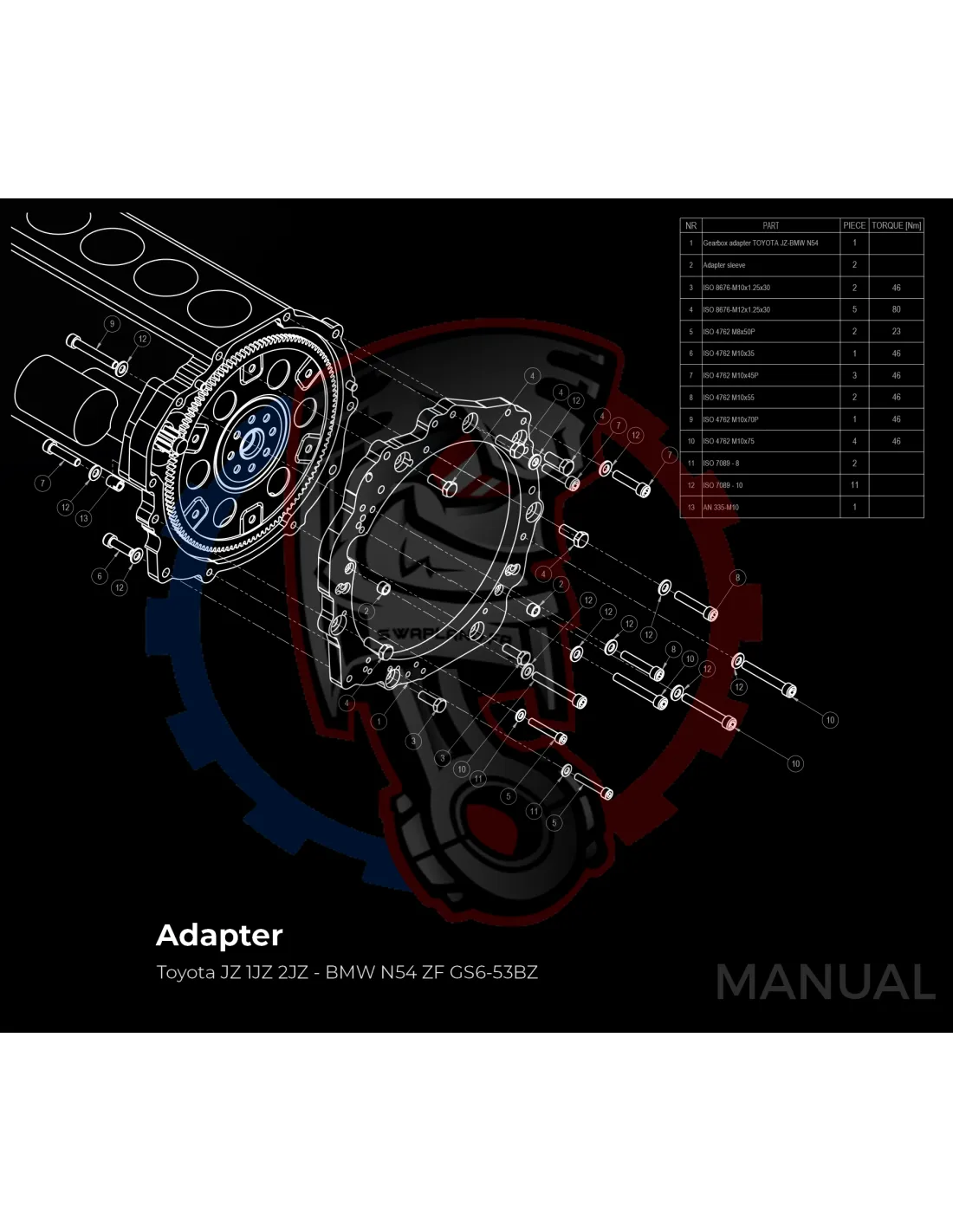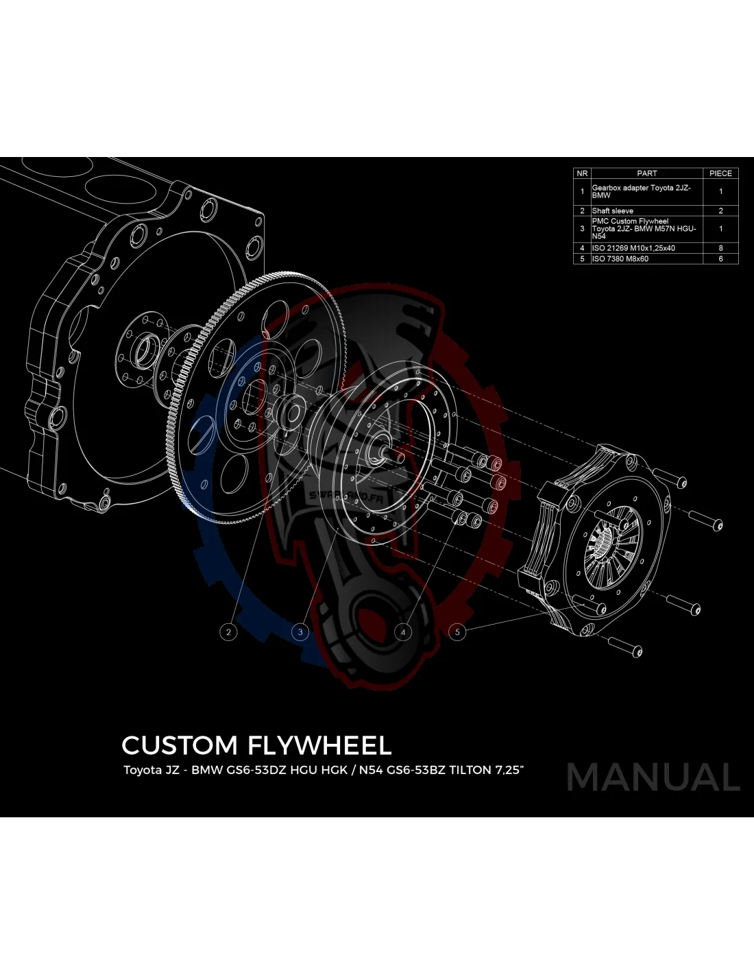 Kit conversion race Stage 3 moteur Toyota JZ pour boite de vitesse BMW M57N HGU HGK / N54 - 184mm