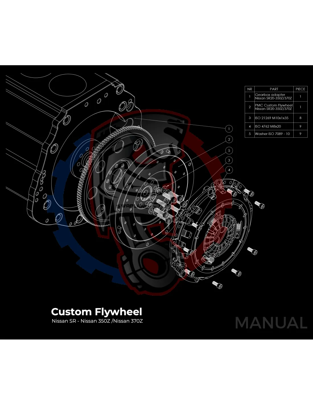 Kit conversion Stage 2 moteur Nissan SR20 SR20DE SR20DET 200SX pour boite de vitesse Nissan 350Z Z33 370Z Z34 CD009 - 250mm