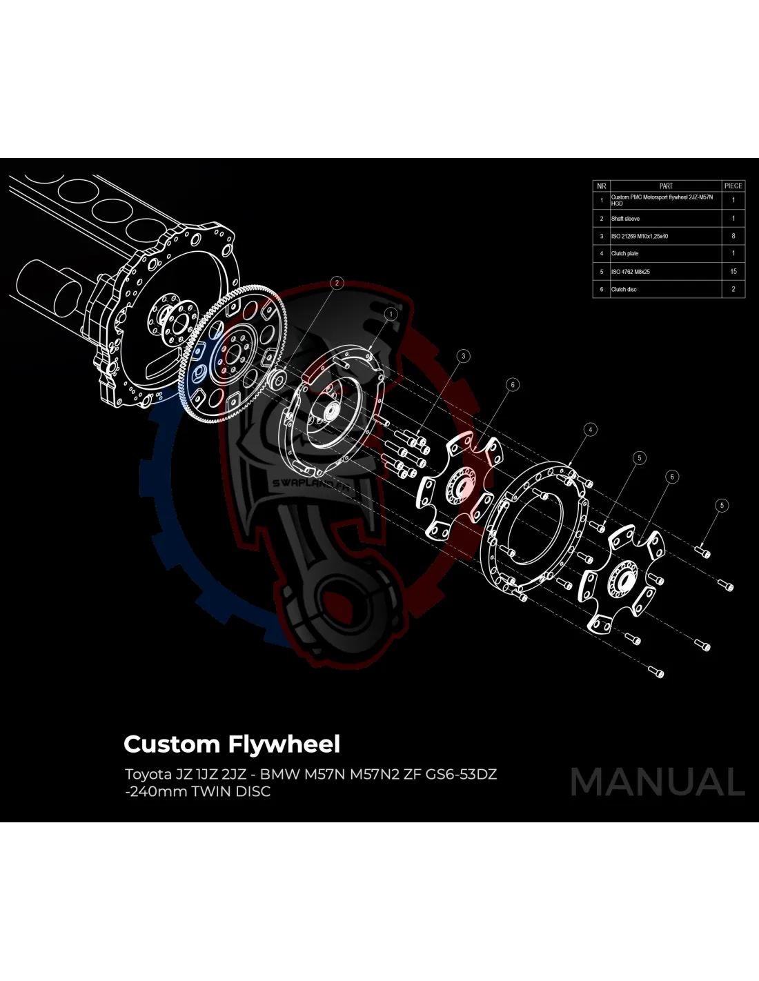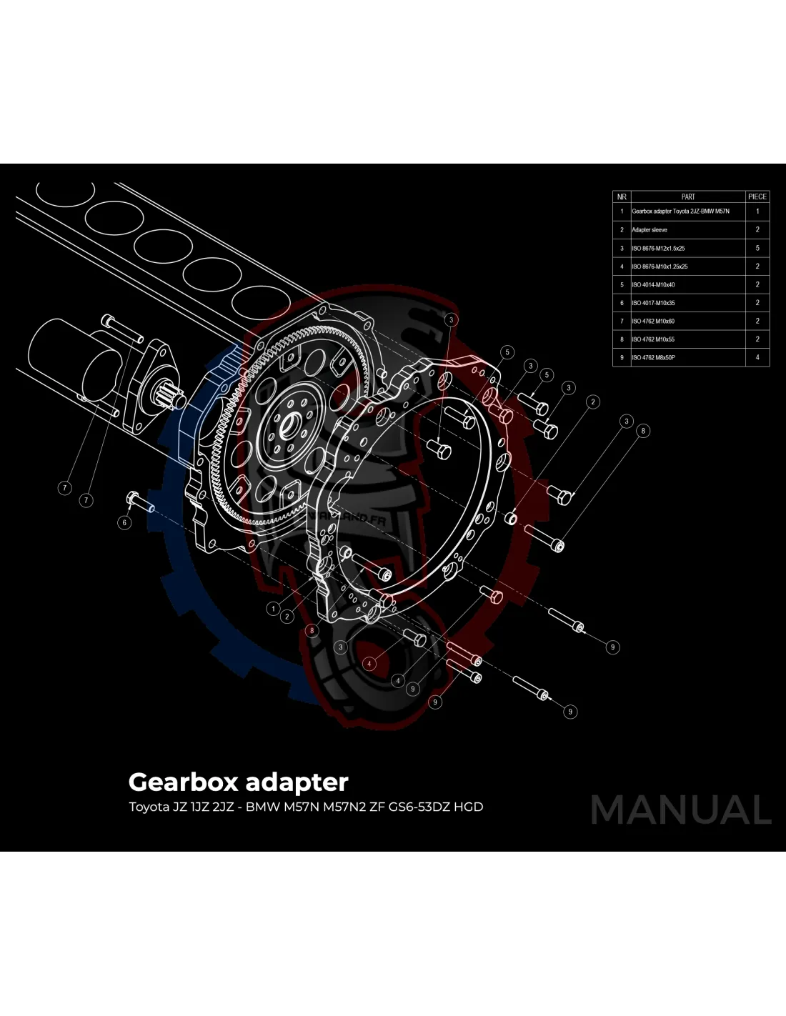 Kit conversion Race Stage moteur Toyota JZ pour boite de vitesse BMW M57N HGD JGA - 240mm