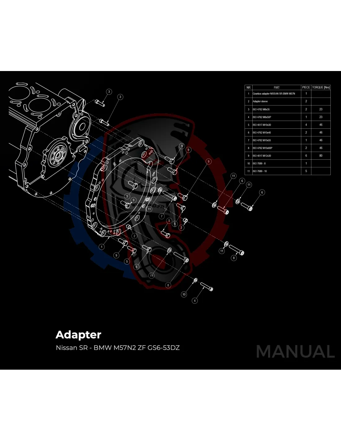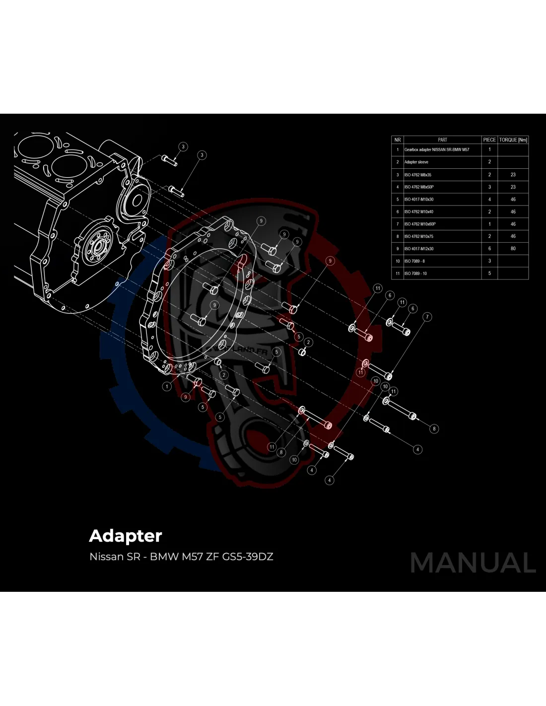 Kit conversion Race Stage 1 moteur Nissan SR SR20 SR20DE SR20DET pour boite de vitesse BMW M57N M57N2 6-speed HGD JGA HGA - 240mm