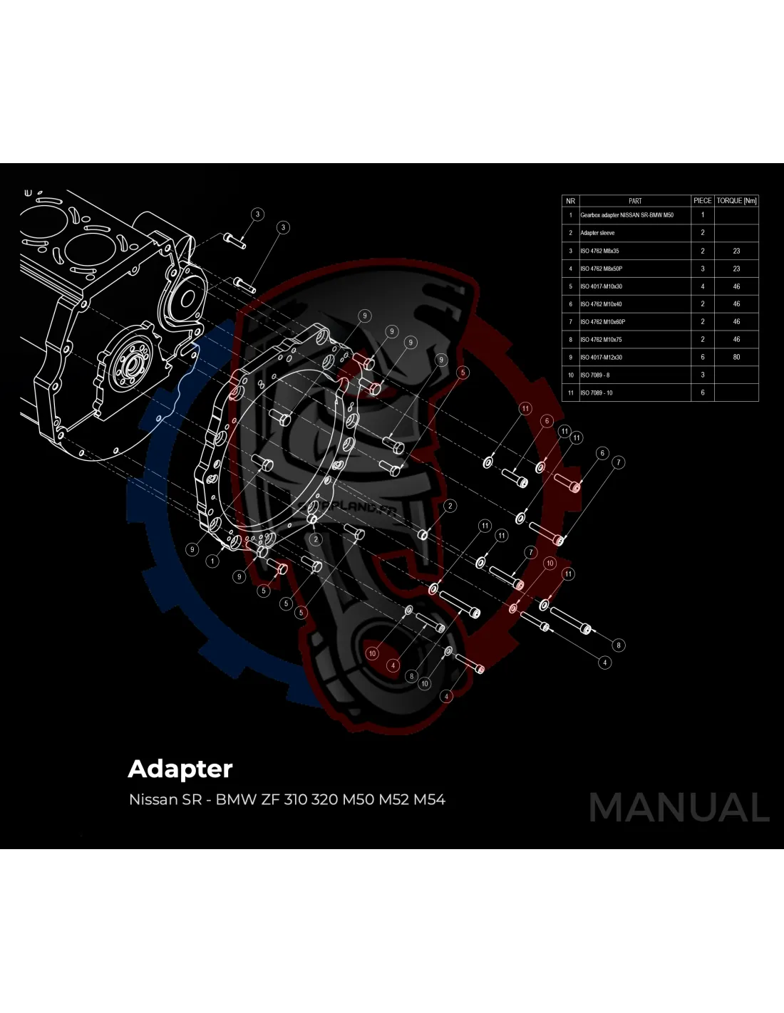 Kit conversion Stage 1 moteur Nissan SR SR20 SR20DE SR20DET pour boite de vitesse BMW M57 / E46 S54 M3 - 240mm
