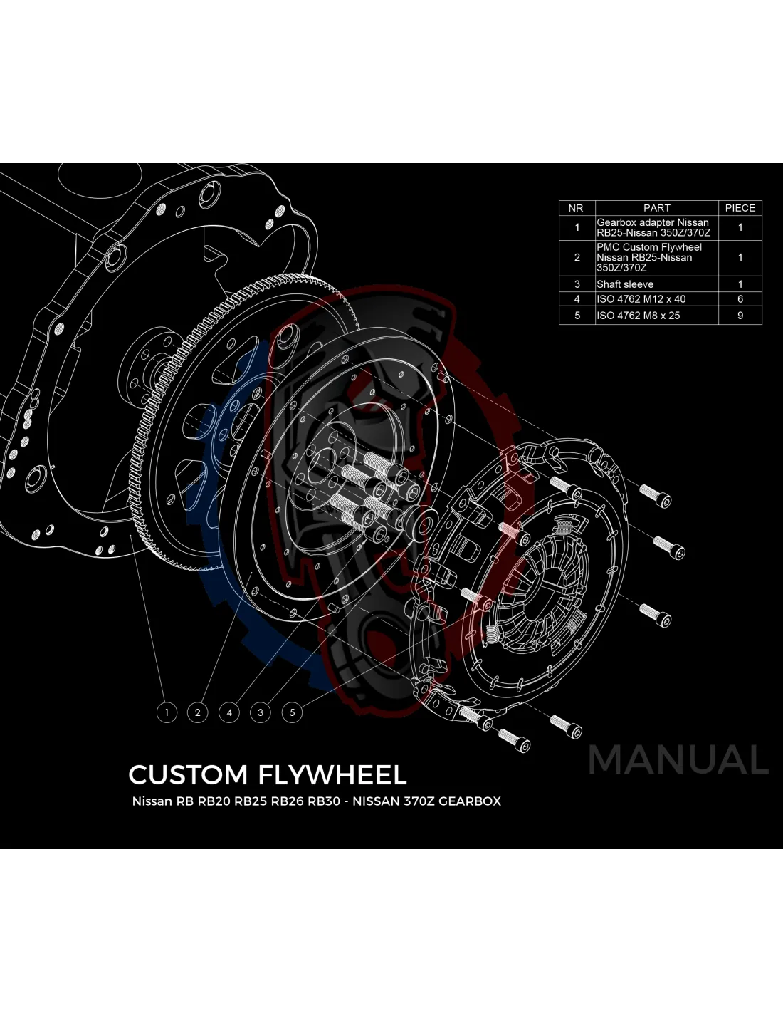 Kit conversion Stage 1 moteur Nissan RB RB20 RB25 RBB6 RB30 pour boite de vitesse Nissan 350Z Z33 370Z Z34 CD009 - 250mm