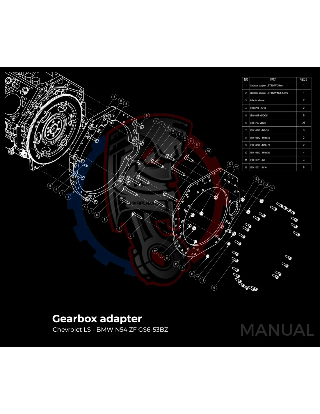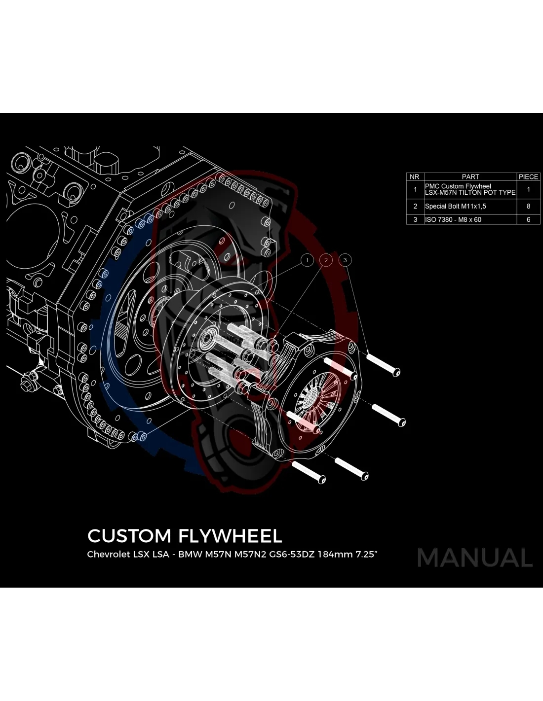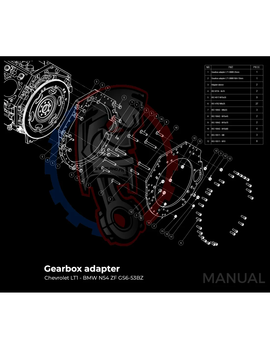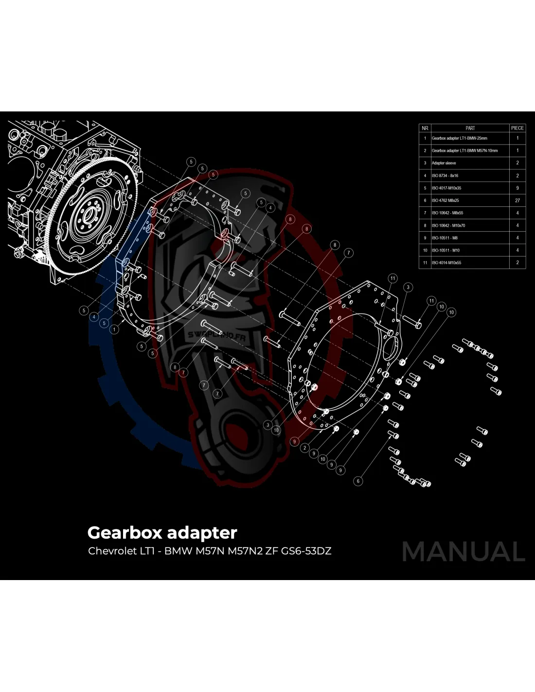 Kit conversion Race Stage 3 moteur GM Chevrolet LSX pour boite de vitesse BMW M57N HGU HGK / N54 - 184mm