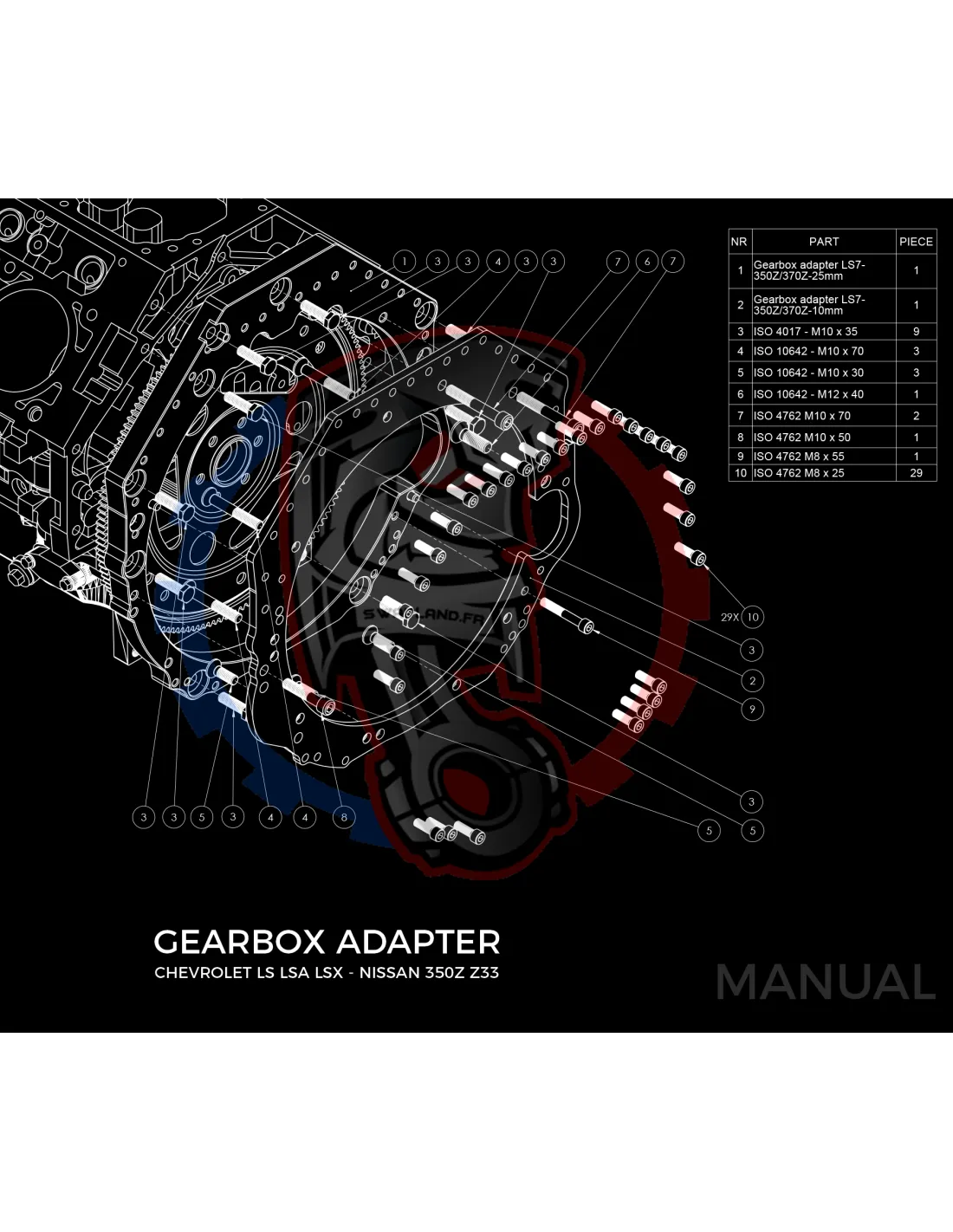 Kit conversion stage 1 moteur GM Chevrolet LS pour boite de vitesse Nissan 350Z Z33 370Z Z34 - 250mm