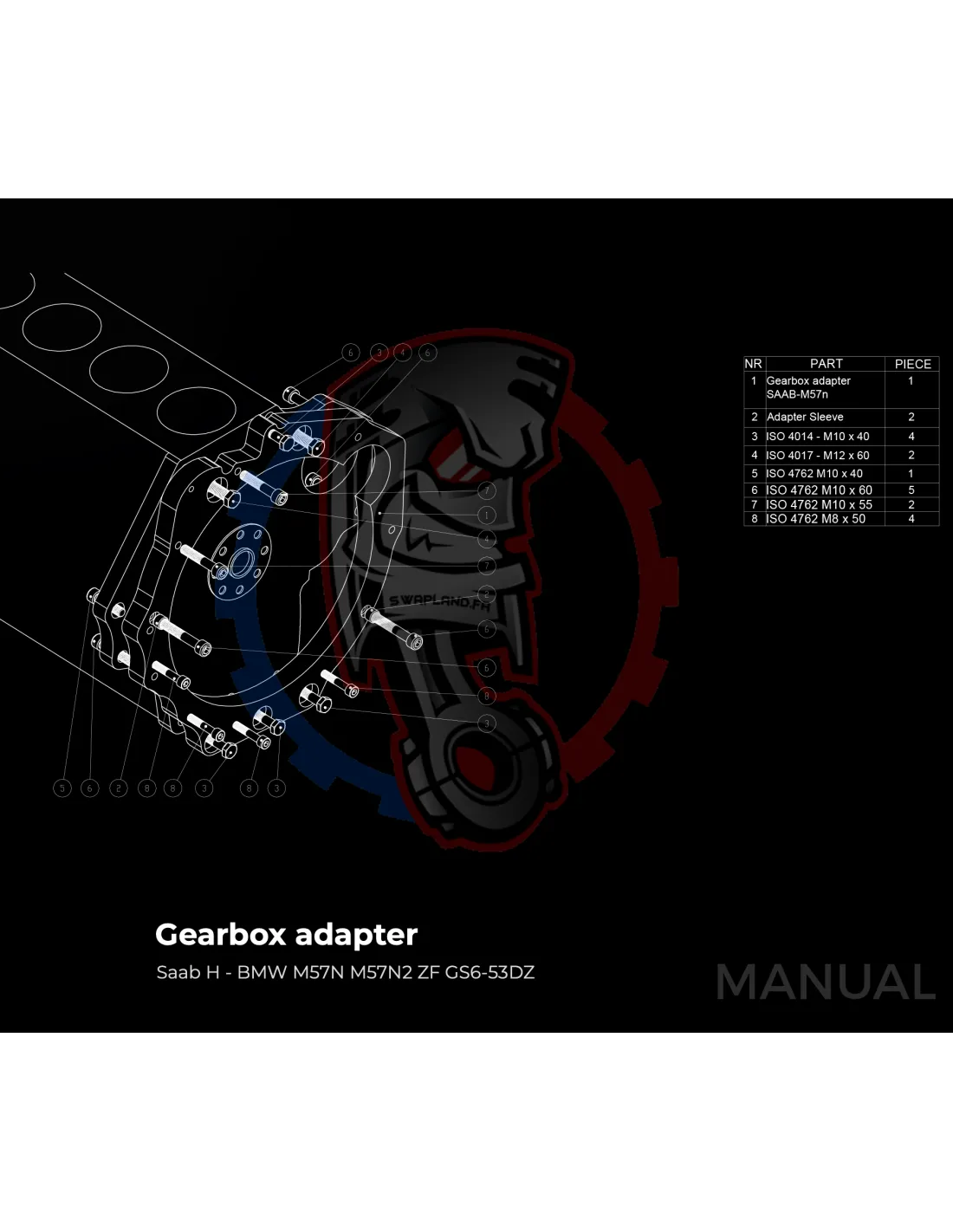 Kit conversion Race Stage 1 moteur Saab H B204 B205 B234 B235 pour boite de vitesse BMW M57N2 6-Speed HGD JGA - 240mm