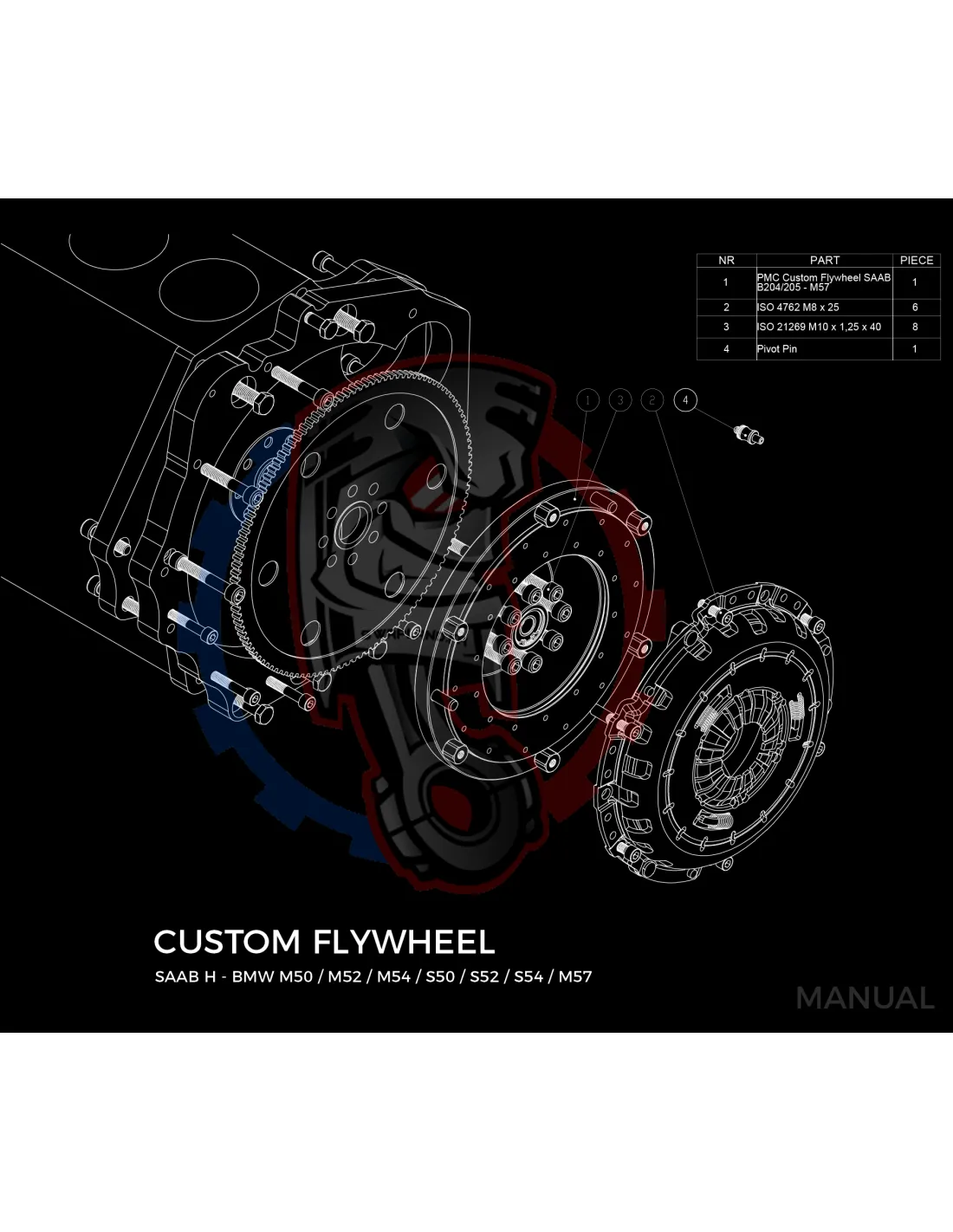 Kit conversion Race Stage 1 moteur Saab H B204 B205 B234 B235 pour boite de vitesse Manuelle BMW M57 / E46 S54 M3 - 240mm