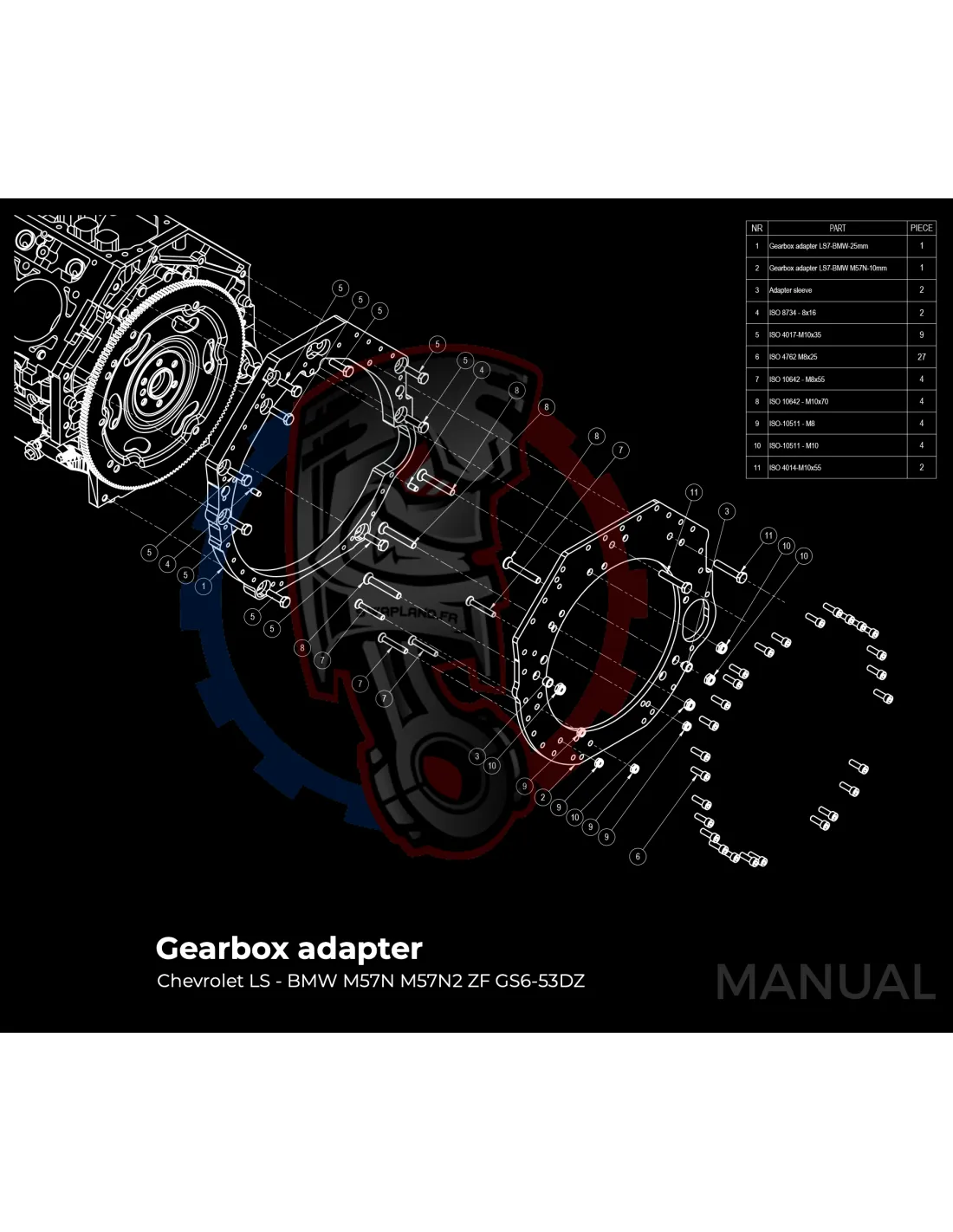 Kit conversion Race Stage 2 moteur GM Chevrolet V8 LS LS1 LS3 LS7 LM7 LQ pour boite de vitesse BMW M57N2 6 Vitesses HGD JGA - 184mm
