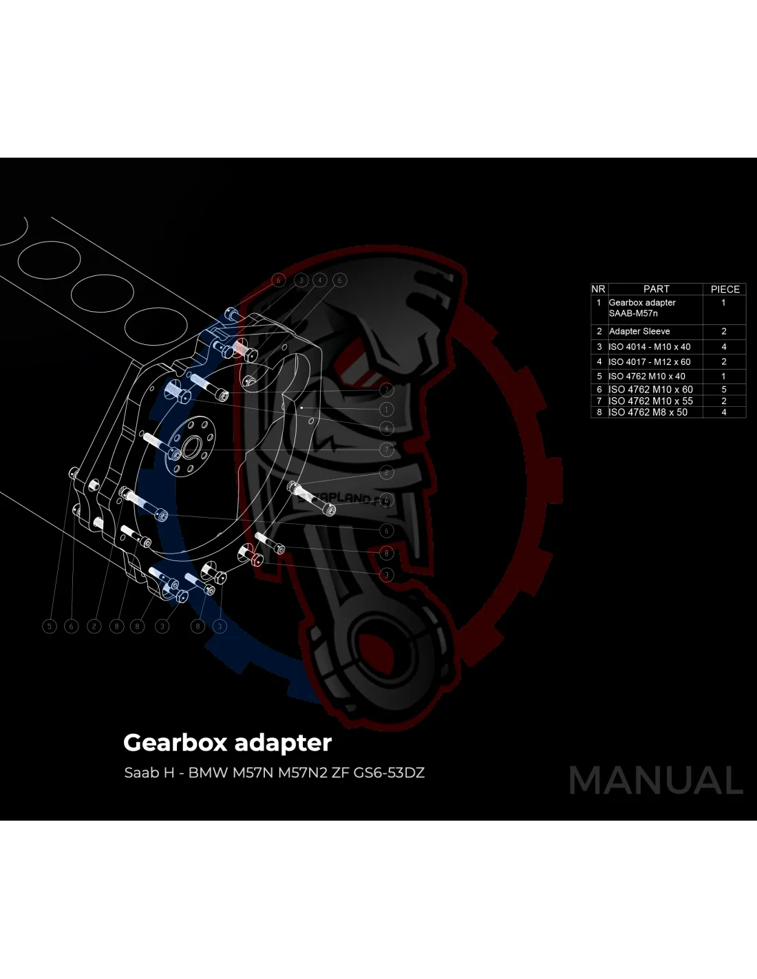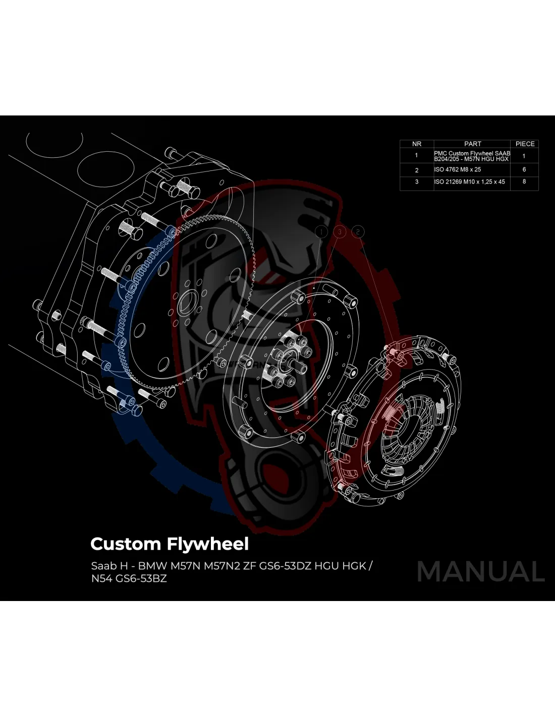 Kit conversion Stage 1 moteur Saab H B204 B205 B234 B235 pour boite BMW M57N2 6 vitesses HGU HGK - 240mm