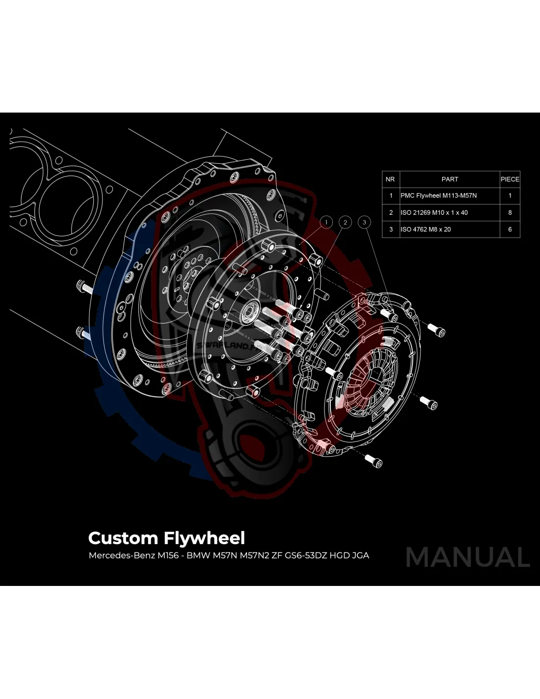Kit conversion Race Stage 1 moteur Mercedes-Benz M113 M113K AMG pour boite BMW M57N2 6-Vitesses HGD JGA - 240mm