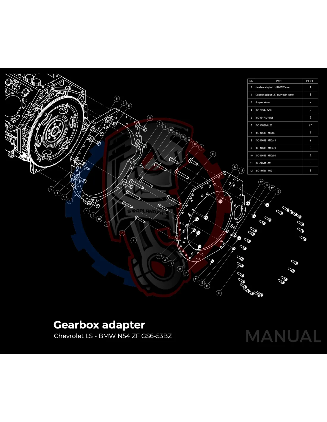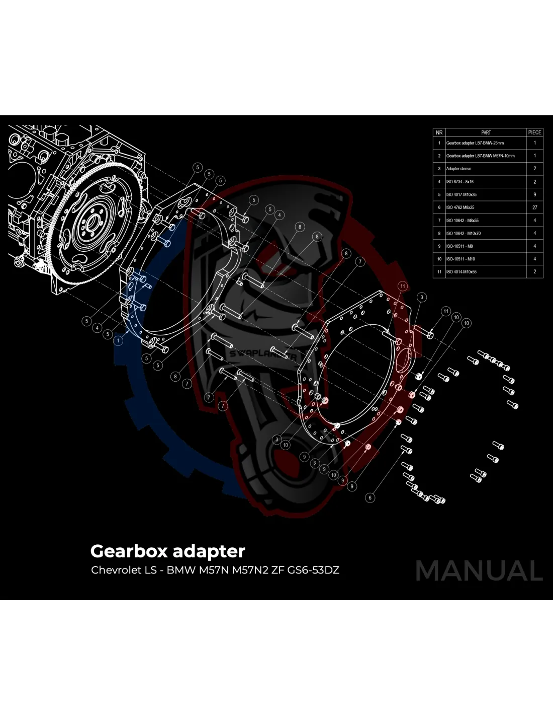 Kit conversion Race Stage 3 moteur GM Chevrolet LS pour boite de vitesse BMW M57N HGU HGK / N54 - 184mm