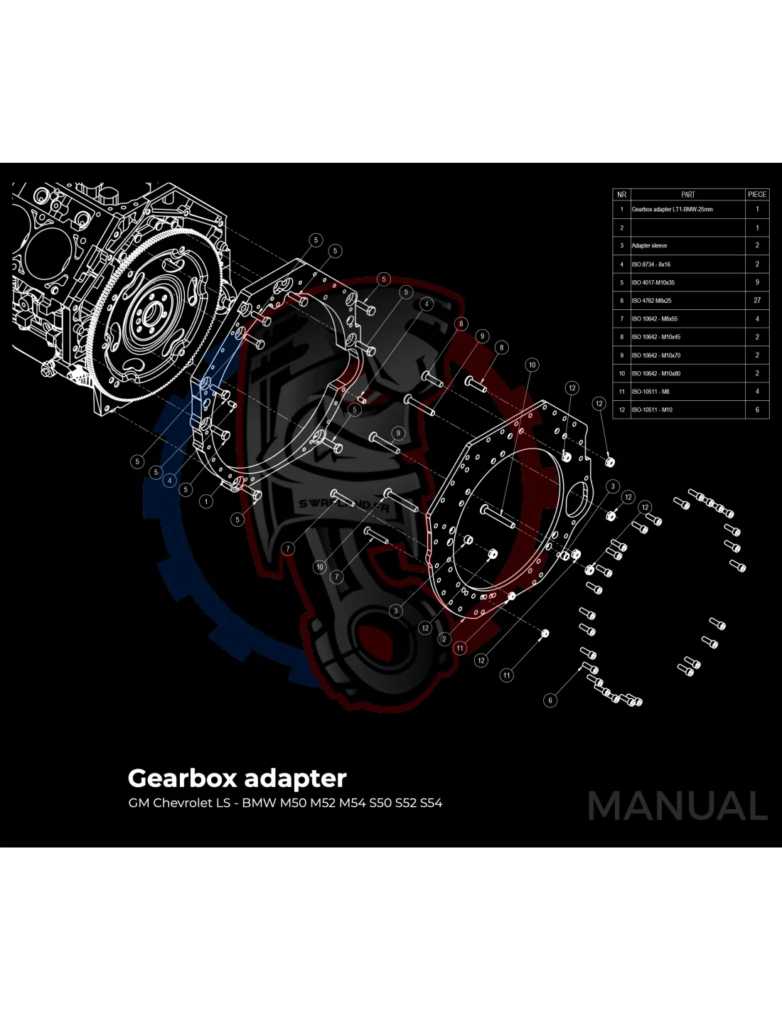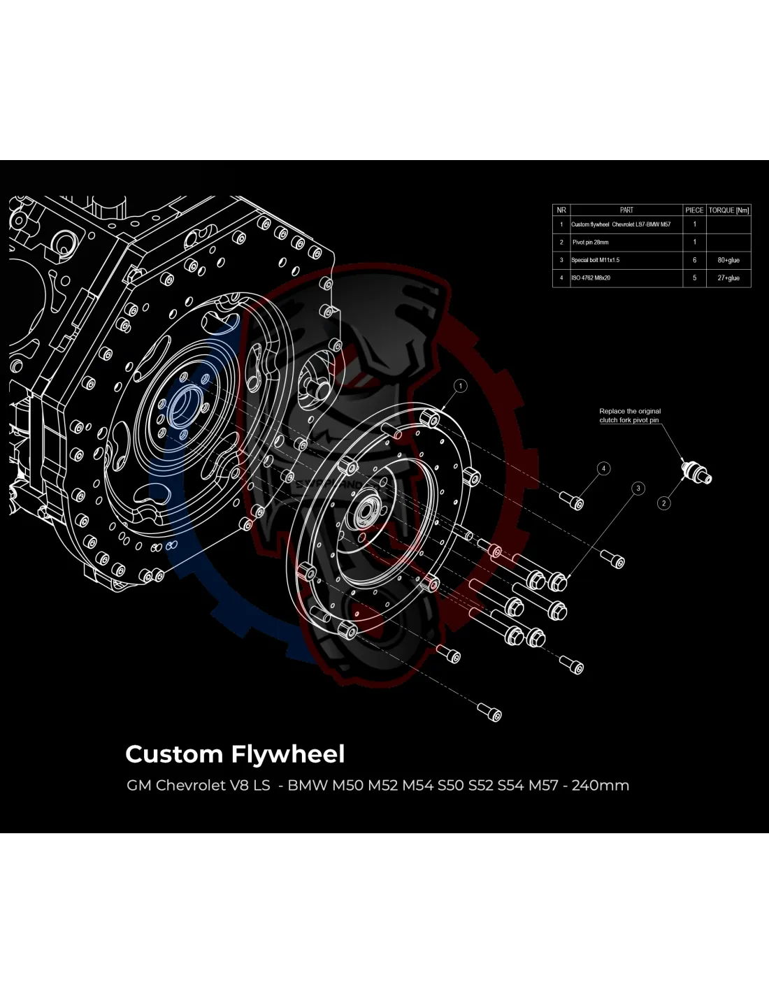 Kit conversion Race Stage 1 moteur GM Chevrolet V8 LS LS1 LS3 LS7 LM7 LQ pour boite de vitesse BMW M57 / E46 S54 M3 - 240mm