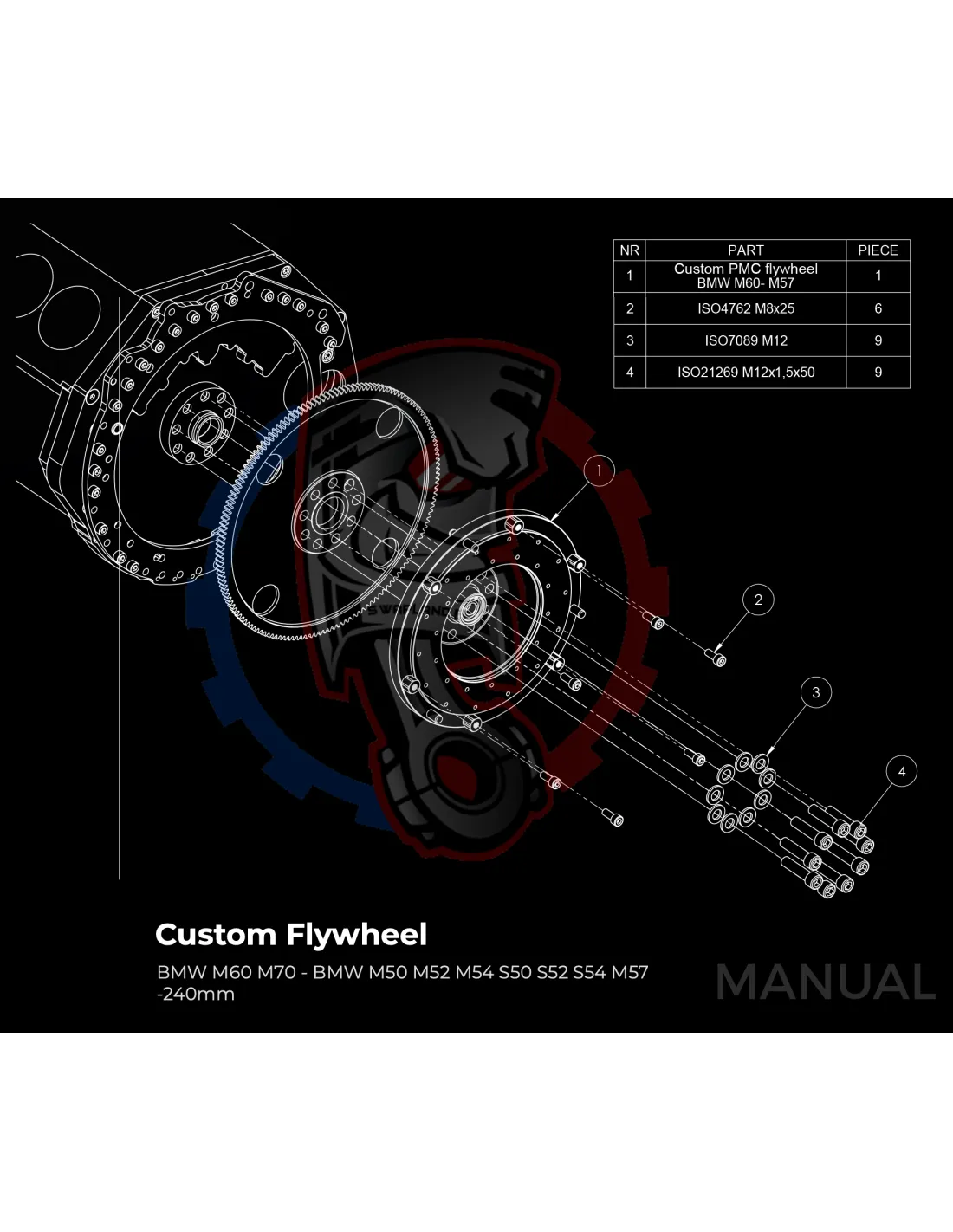 Kit Conversion Stage 1 pour moteur BMW V12 M70 boite manuelle BMW M57 / E46 S54 M3 - 240mm