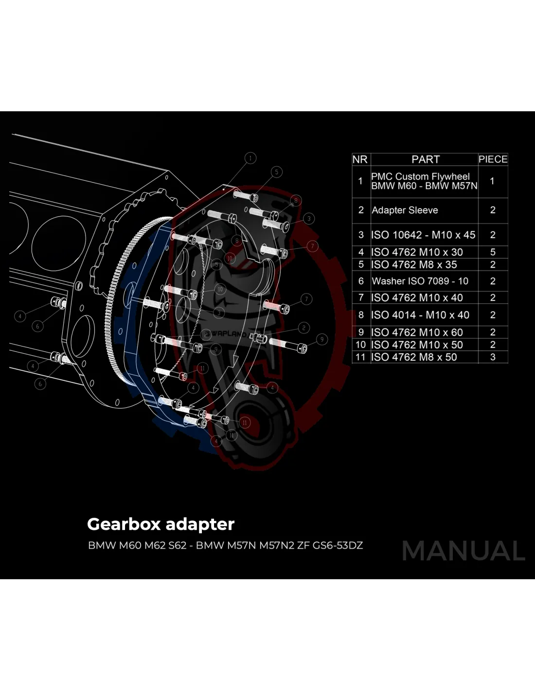Kit conversion Stage 2 pour moteur BMW M60 avec boite BMW M57N HGD JGA - 228mm