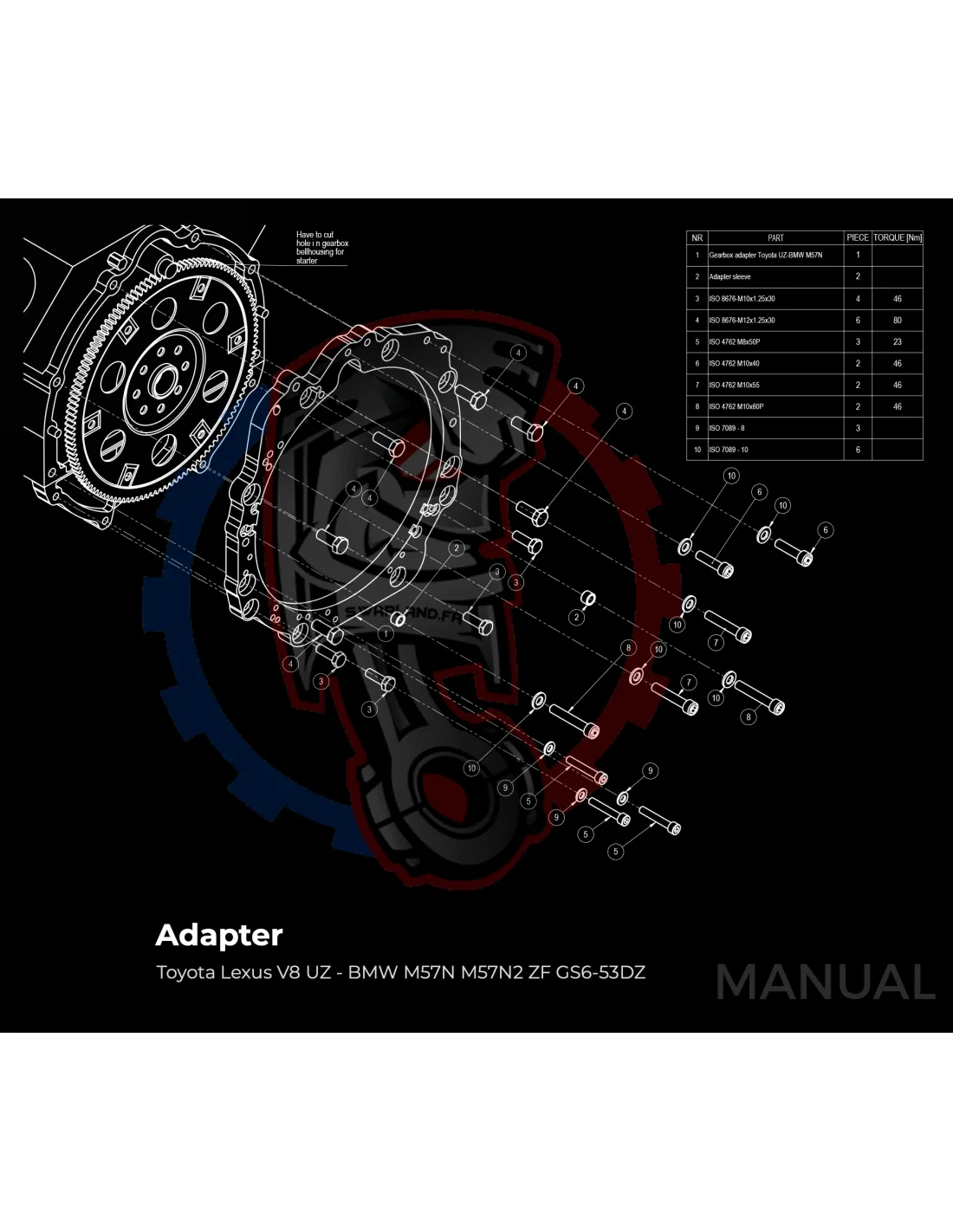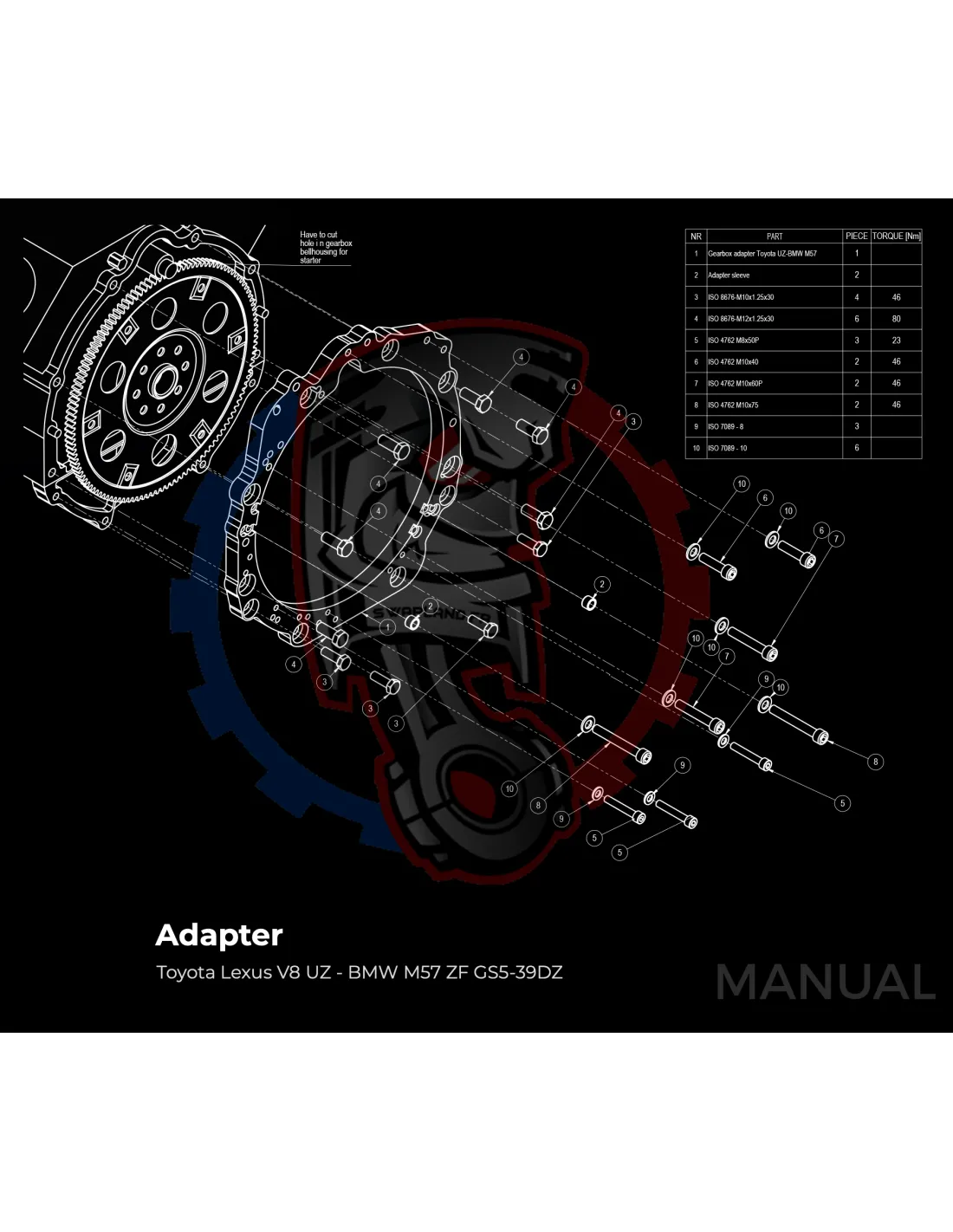 Kit conversion Race Stage 2 moteur Toyota Lexus V8 UZ 1UZ 3UZ pour boite de vitesse BMW M57N M57N2 6-Vitesses HGD JGA HGA - 184mm